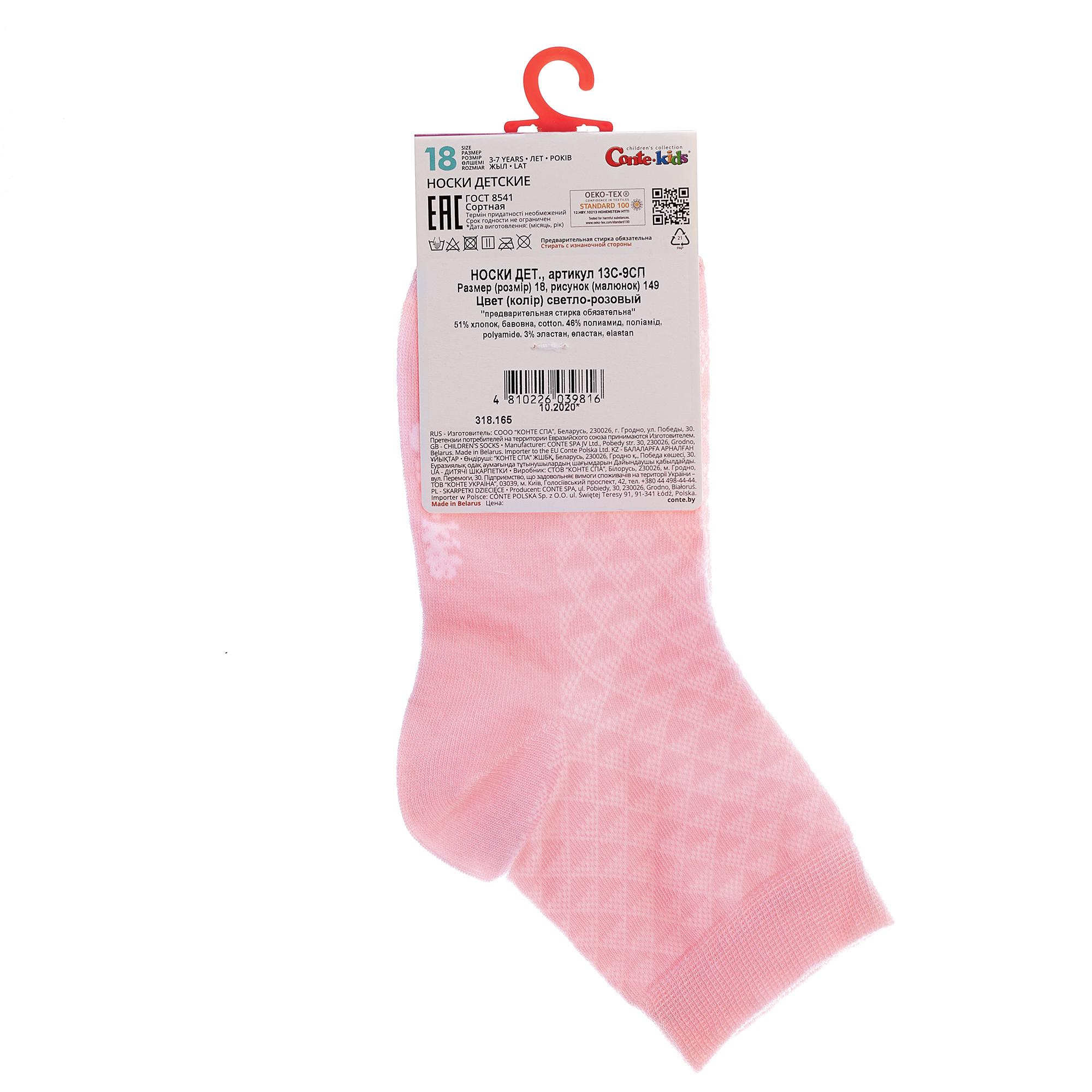 Летние укороченные детские носки, цвет розовый, ажурные, состав: 51% хлопок, 46% полиамид, 3% эластан, фабричный артикул 13С-9СП. Производитель «Conte, Беларусь» под брендом «Conte».