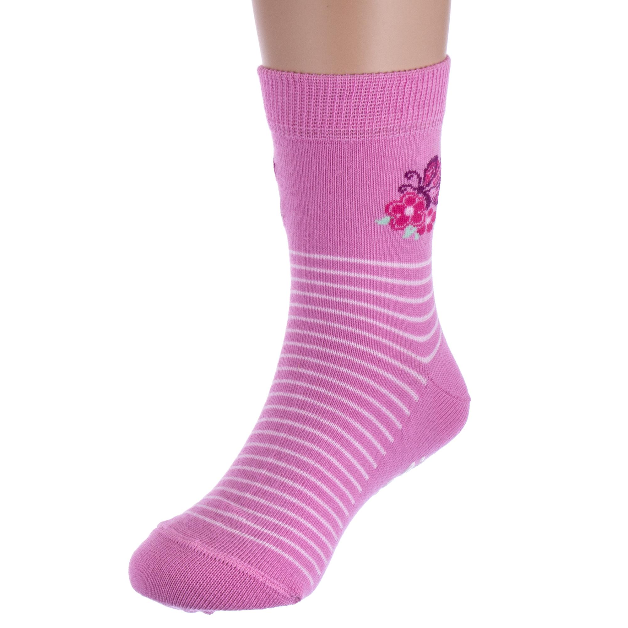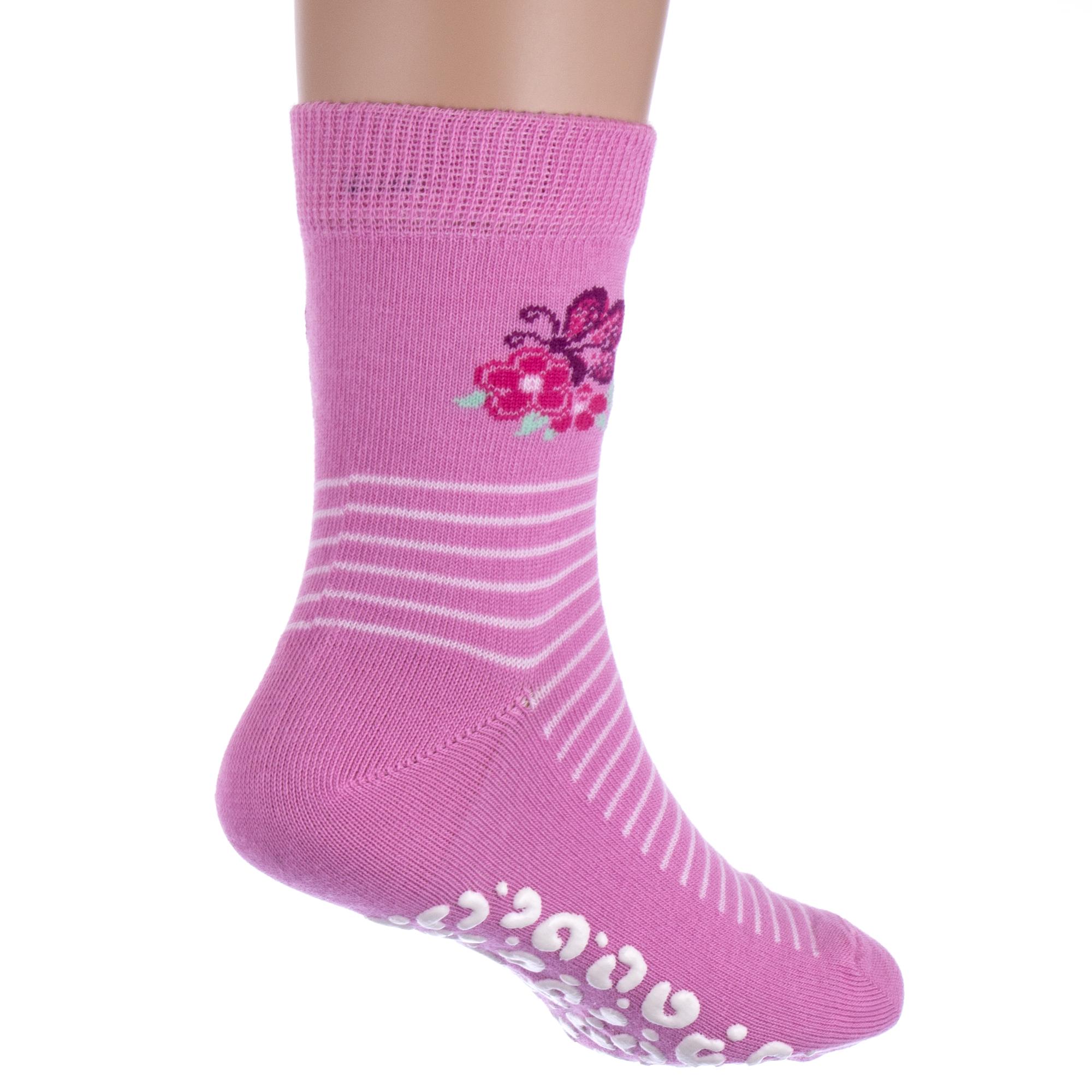 Круглогодичные укороченные детские носки, цвет розовый, с нескользящей стопой, состав: 72% хлопок, 25.5% полиамид, 2.5% эластан, фабричный артикул 7С-54СП. Производитель «Conte, Беларусь» под брендом «Conte».