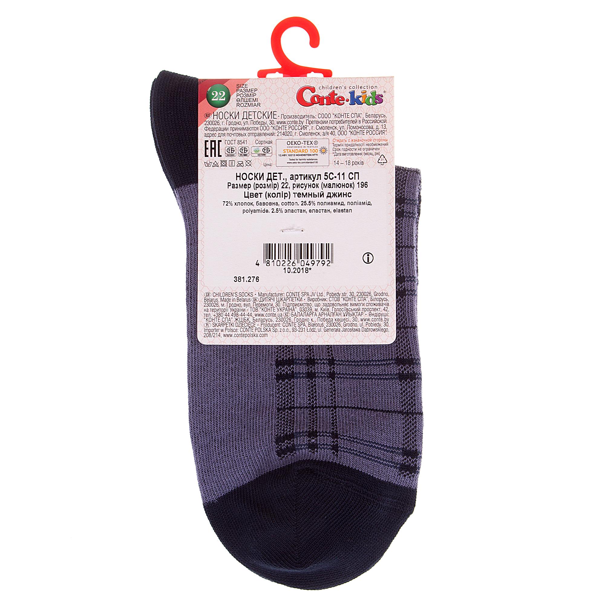 Круглогодичные укороченные детские носки, цвет джинс, классические, состав: 72% хлопок, 25,5% полиамид, 2,5% эластан, фабричный артикул 5С-11СП. Производитель «Conte, Беларусь» под брендом «Conte».