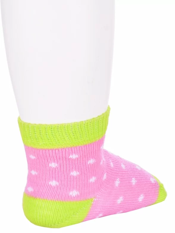 Круглогодичные укороченные детские носки, цвет розовый-салатовый, прикольные, состав: 72% хлопок, 25.5% полиамид, 2.5% эластан, фабричный артикул 5С-11СП. Производитель «Conte, Беларусь» под брендом «Conte».