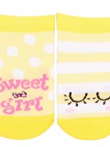 Круглогодичные укороченные детские носки, цвет розовый-желтый, прикольные, состав: 72% хлопок, 25.5% полиамид, 2.5% эластан, фабричный артикул 5С-11СП. Производитель «Conte, Беларусь» под брендом «Conte».