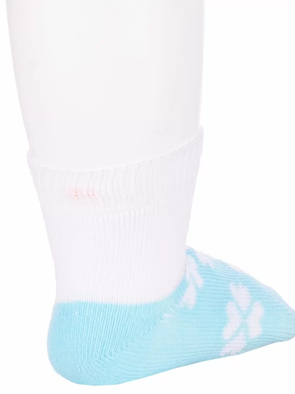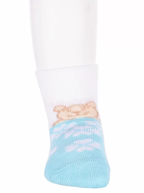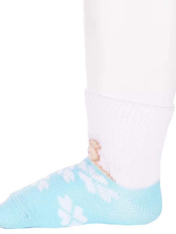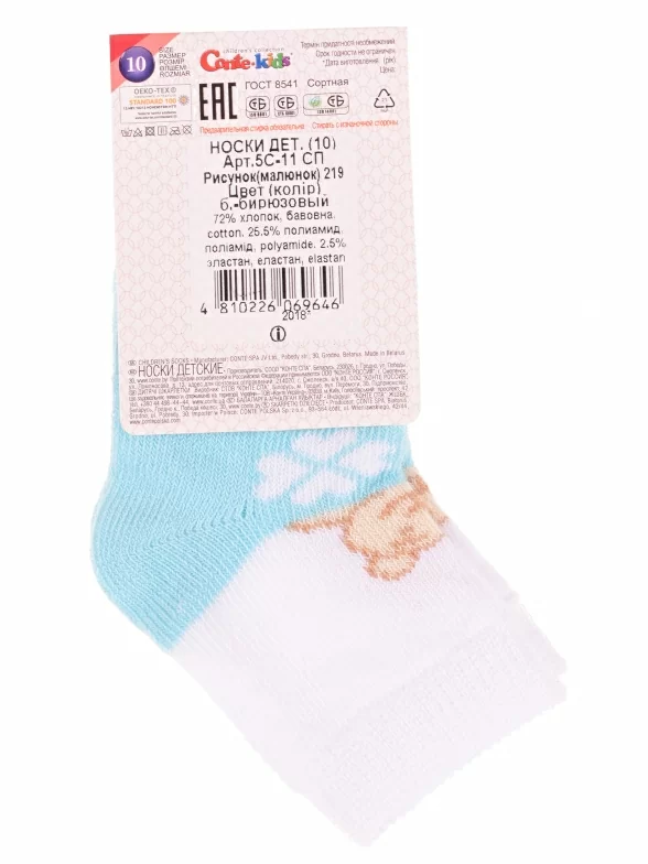Круглогодичные укороченные детские носки, цвет белый-бирюзовый, прикольные, состав: 72% хлопок, 25.5% полиамид, 2.5% эластан, фабричный артикул 5С-11СП. Производитель «Conte, Беларусь» под брендом «Conte».