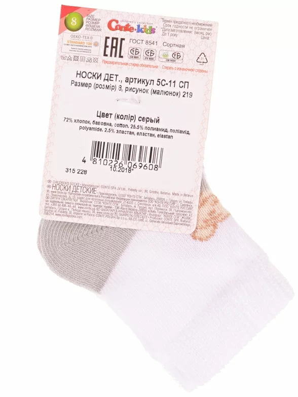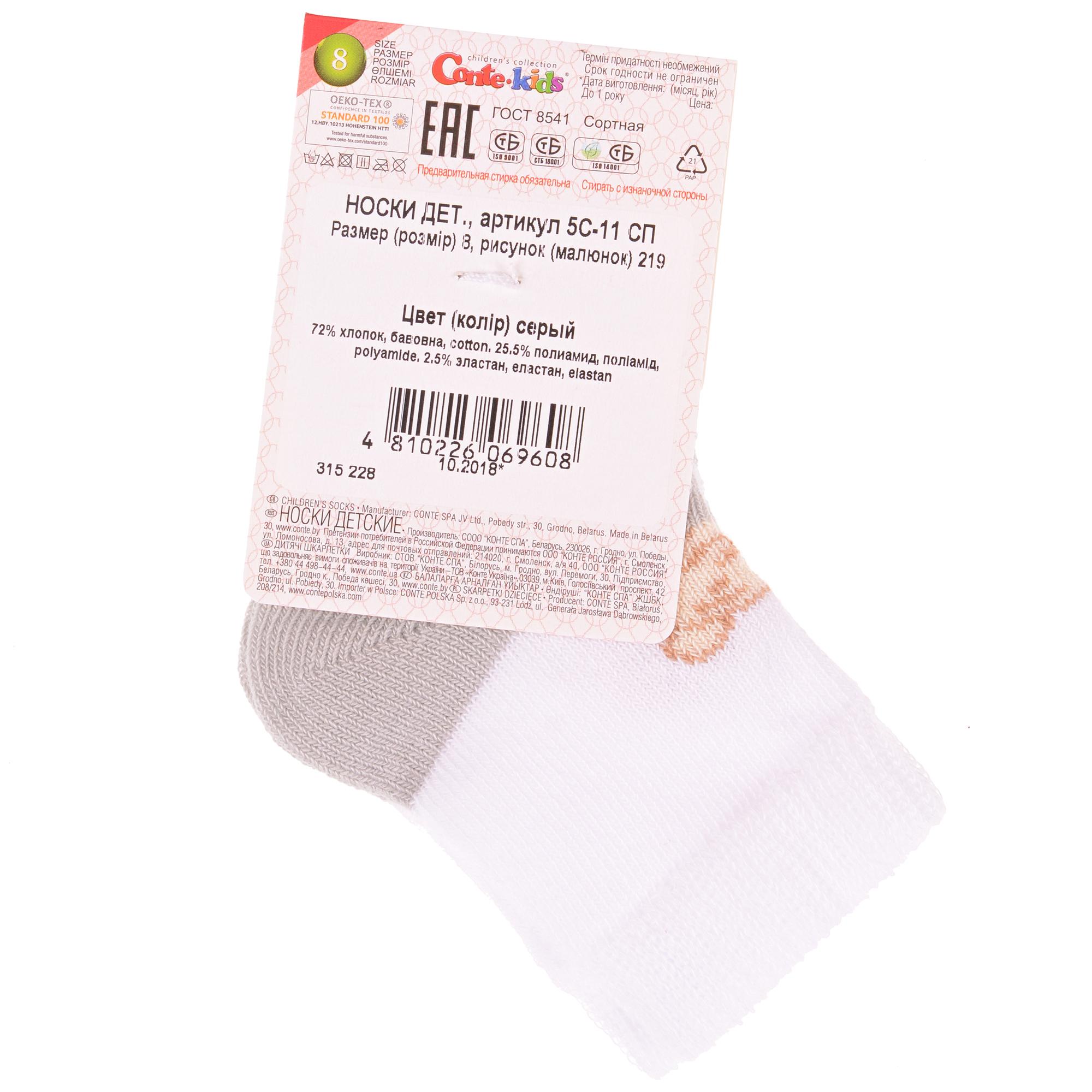 Круглогодичные укороченные детские носки, цвет серый, прикольные, состав: 72% хлопок, 25,5% полиамид, 2,5% эластан, фабричный артикул 5С-11СП. Производитель «Conte, Беларусь» под брендом «Conte».