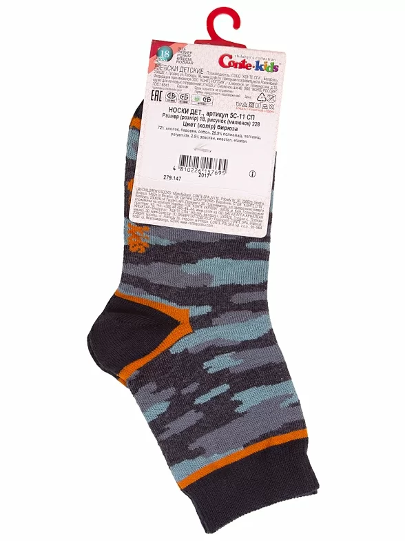 Круглогодичные укороченные детские носки, цвет бирюзовый, прикольные, состав: 72% хлопок, 25,5% полиамид, 2,5% эластан, фабричный артикул 5С-11СП. Производитель «Conte, Беларусь» под брендом «Conte».