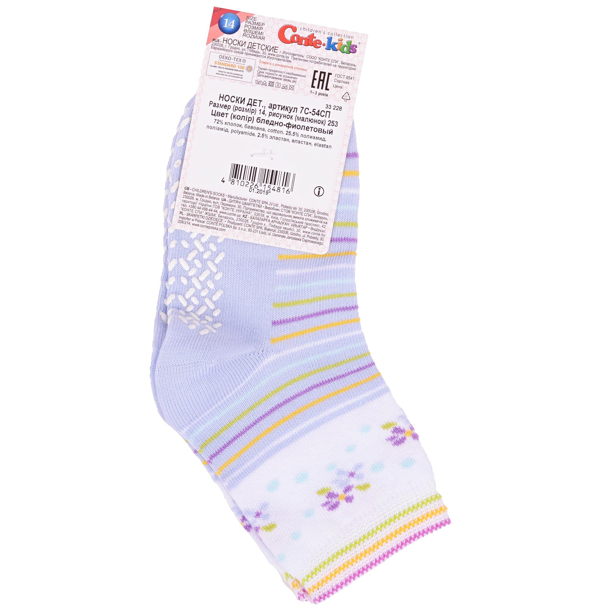 Круглогодичные укороченные детские носки, цвет фиолетовый, с нескользящей стопой, состав: 72% хлопок, 25.5% полиамид, 2.5% эластан, фабричный артикул 7С-54СП. Производитель «Conte, Беларусь» под брендом «Conte».