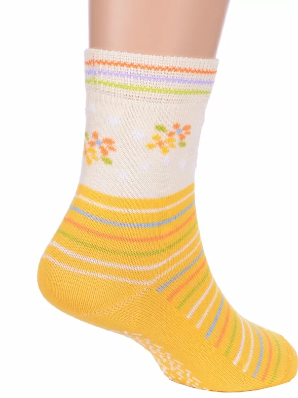 Круглогодичные укороченные детские носки, цвет желтый, с нескользящей стопой, состав: 72% хлопок, 25.5% полиамид, 2.5% эластан, фабричный артикул 7С-54СП. Производитель «Conte, Беларусь» под брендом «Conte».