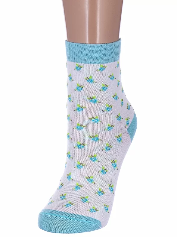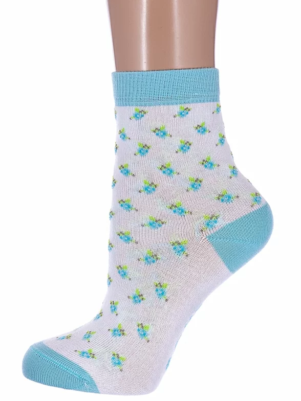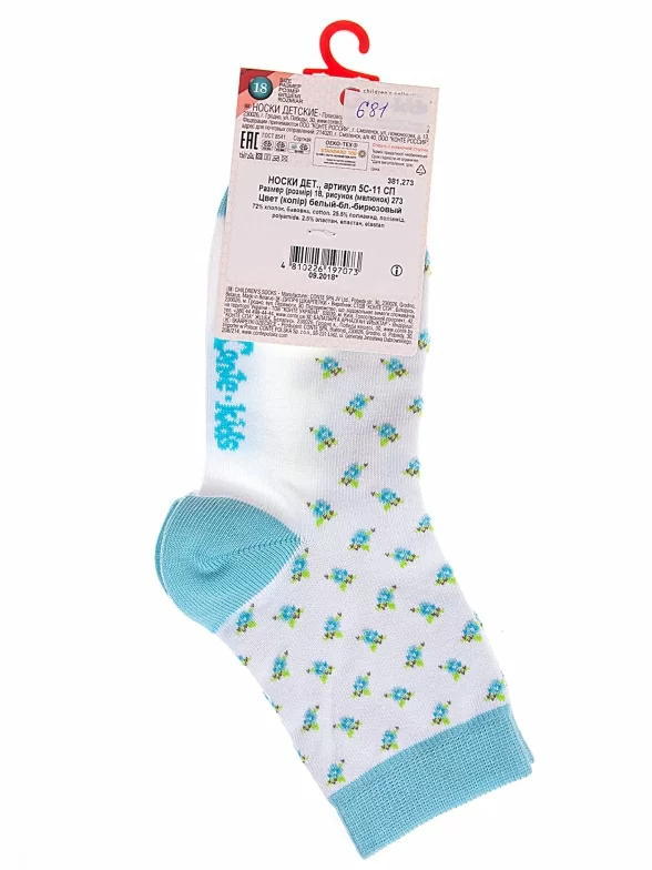 Круглогодичные укороченные детские носки, цвет бирюзовый-белый, прикольные, состав: 72% хлопок, 25,5% полиамид, 2,5% эластан, фабричный артикул 5С-11СП. Производитель «Conte, Беларусь» под брендом «Conte».