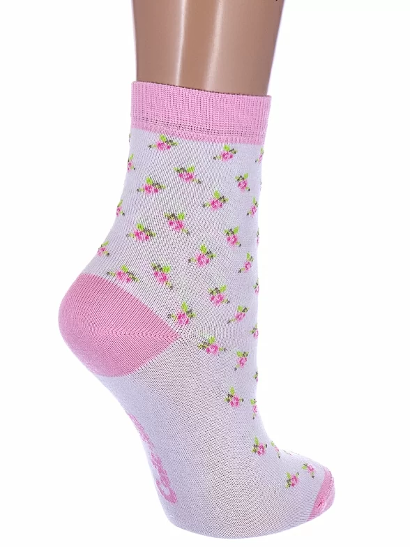 Круглогодичные укороченные детские носки, цвет розовый-белый, прикольные, состав: 72% хлопок, 25,5% полиамид, 2,5% эластан, фабричный артикул 5С-11СП. Производитель «Conte, Беларусь» под брендом «Conte».