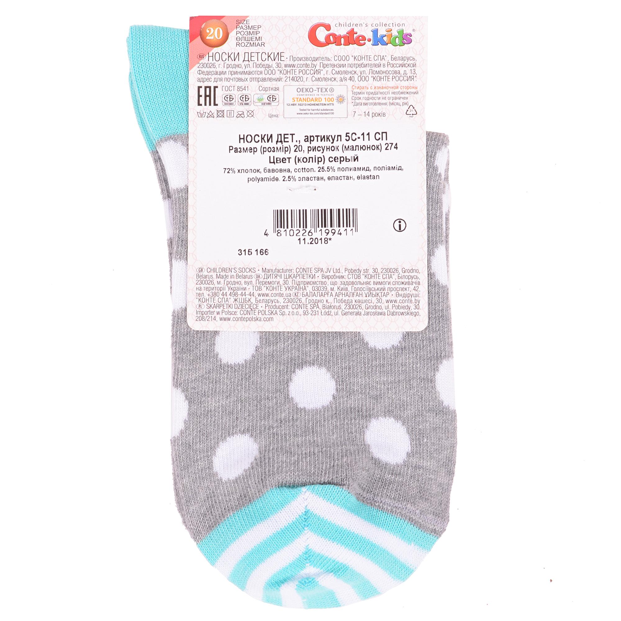 Круглогодичные укороченные детские носки, цвет серый, прикольные, состав: 72% хлопок, 25.5% полиамид, 2.5% эластан, фабричный артикул 5С-11СП. Производитель «Conte, Беларусь» под брендом «Conte».