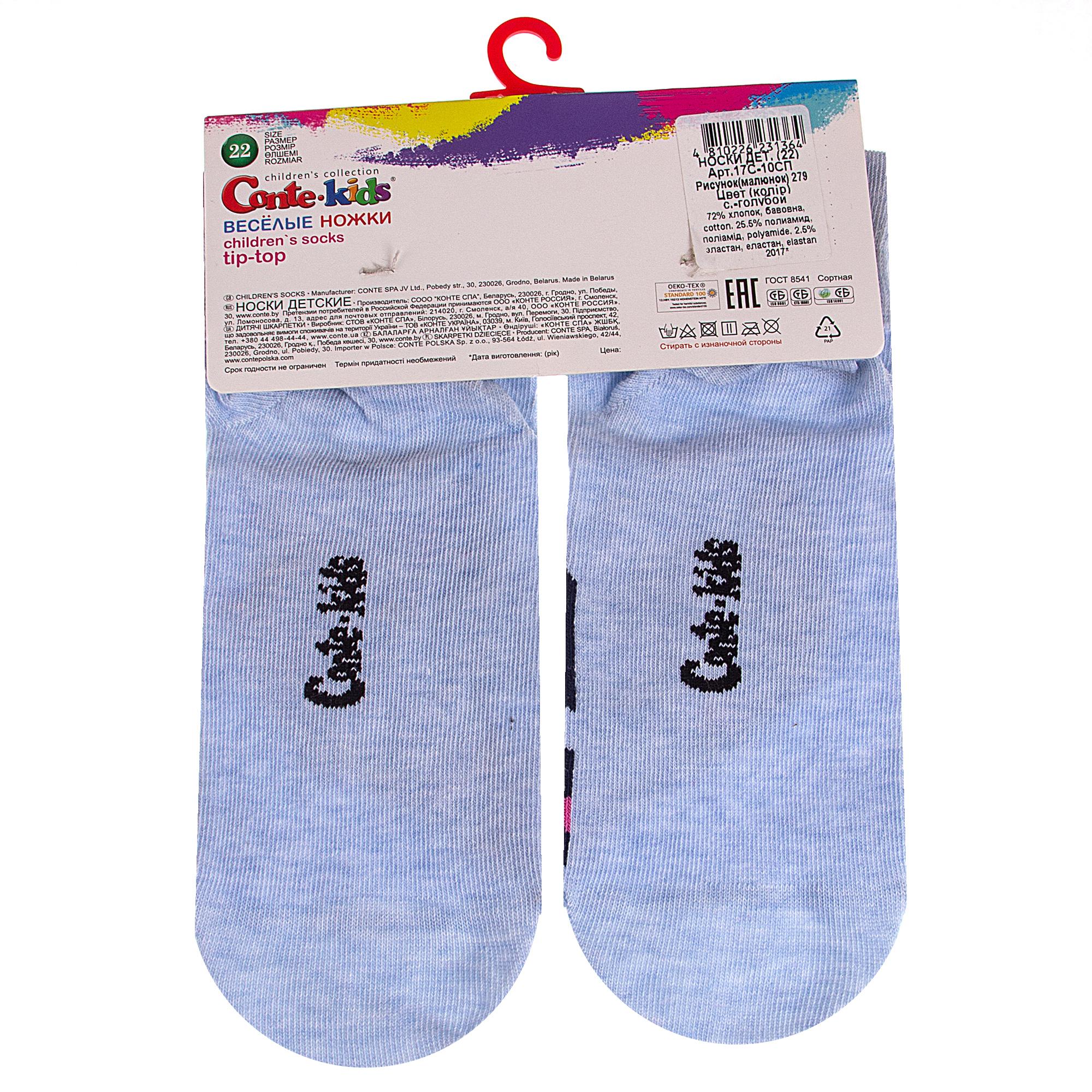 Круглогодичные укороченные детские носки, цвет голубой, прикольные, состав: 72% хлопок, 25.5% полиамид, 2.5% эластан, фабричный артикул 17С-10СП. Производитель «Conte, Беларусь» под брендом «Conte».
