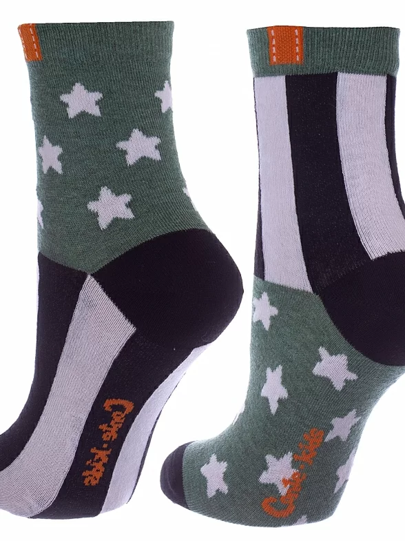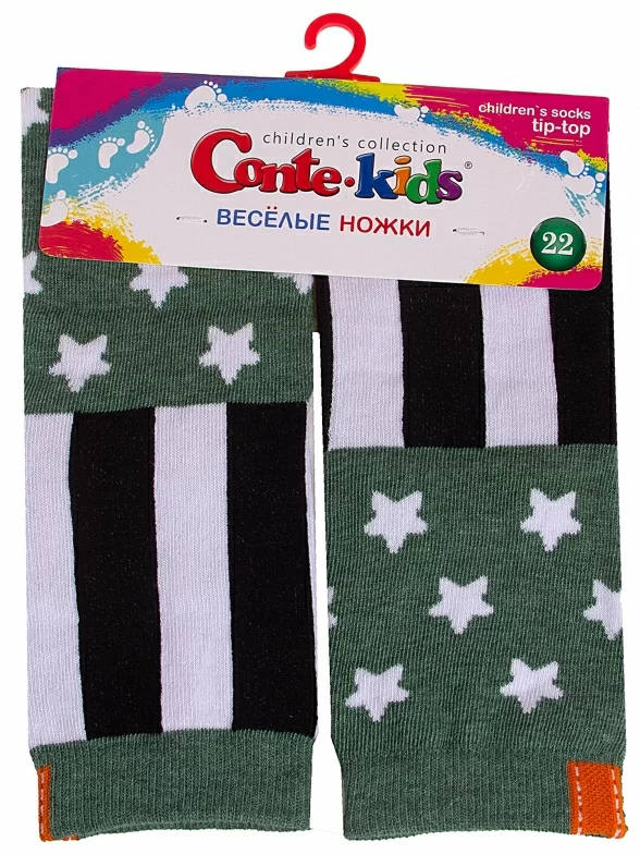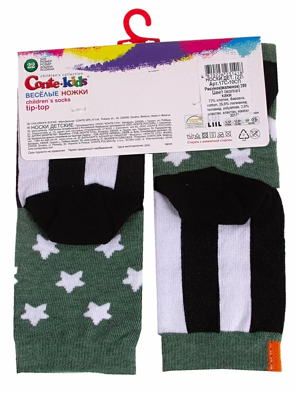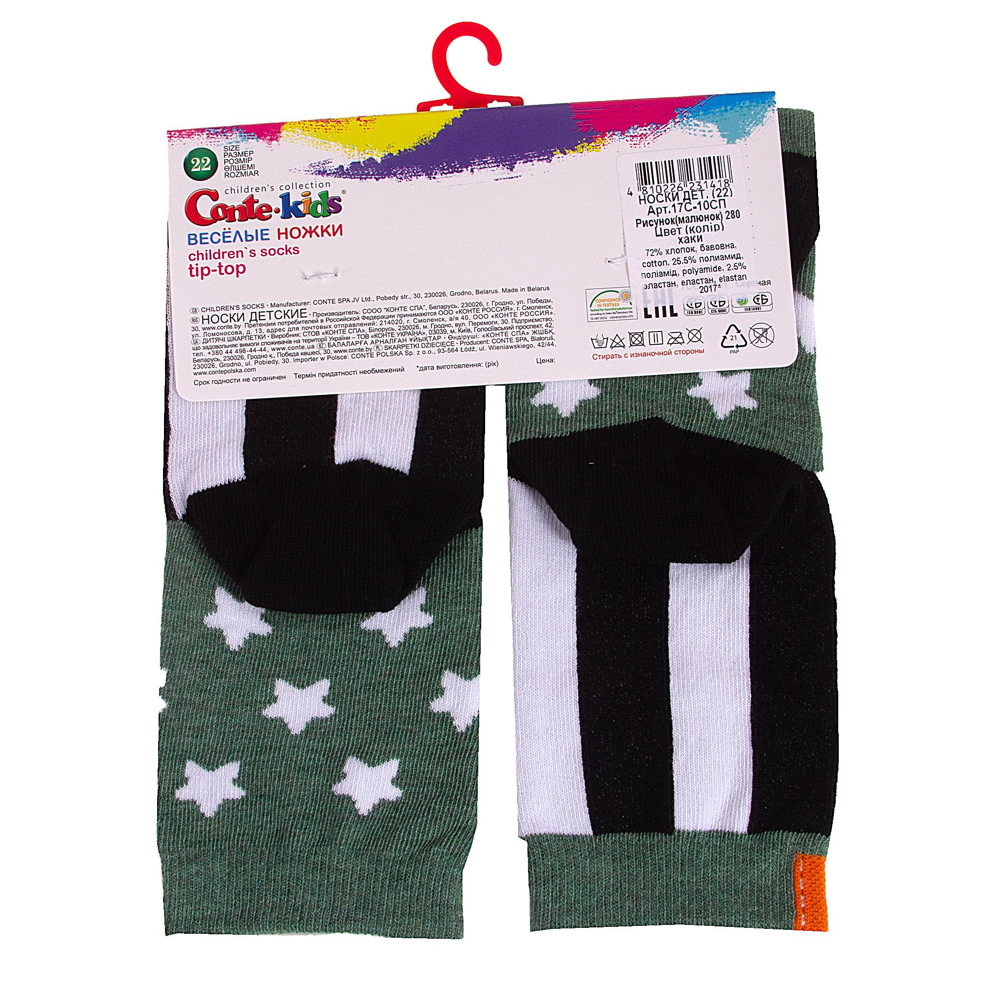 Круглогодичные укороченные детские носки, цвет хаки, прикольные, состав: 72% хлопок, 25.5% полиамид, 2.5% эластан, фабричный артикул 17С-10СП. Производитель «Conte, Беларусь» под брендом «Conte».