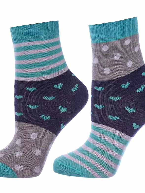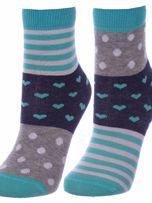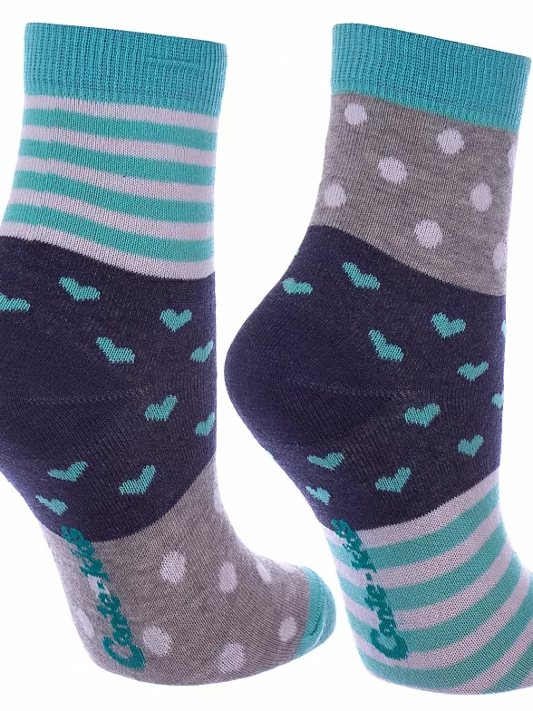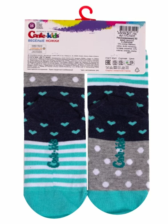 Круглогодичные укороченные детские носки, цвет серый-бирюзовый, прикольные, состав: 72% хлопок, 25.5% полиамид, 2.5% эластан, фабричный артикул 17С-10СП. Производитель «Conte, Беларусь» под брендом «Conte».