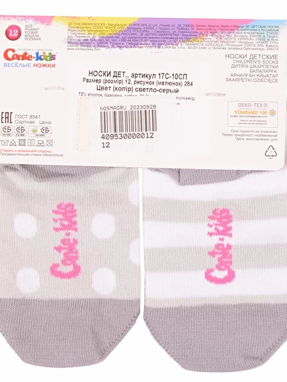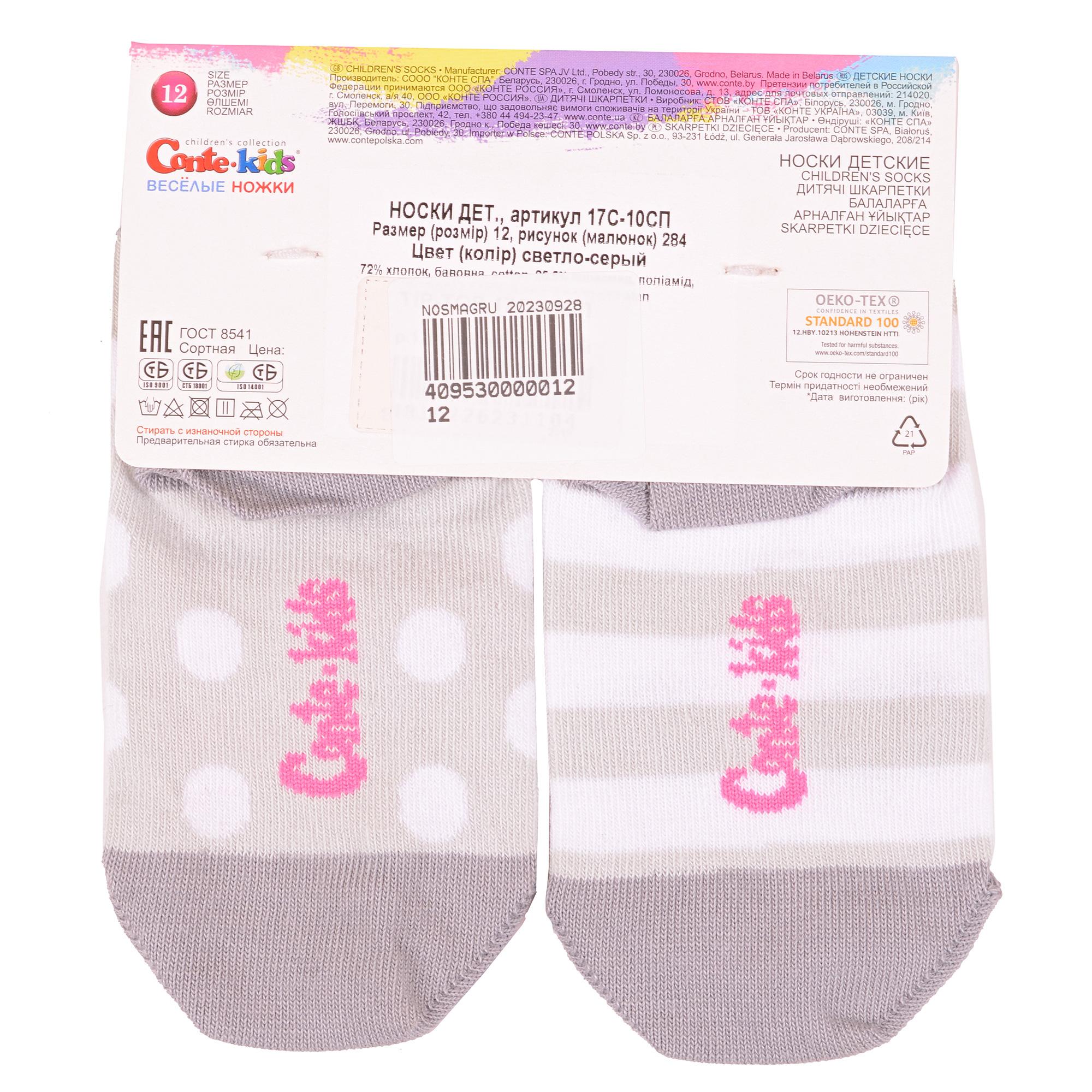 Круглогодичные укороченные детские носки, цвет светло-серый, прикольные, состав: 72% хлопок, 25.5% полиамид, 2.5% эластан, фабричный артикул 17С-10СП. Производитель «Conte, Беларусь» под брендом «Conte».