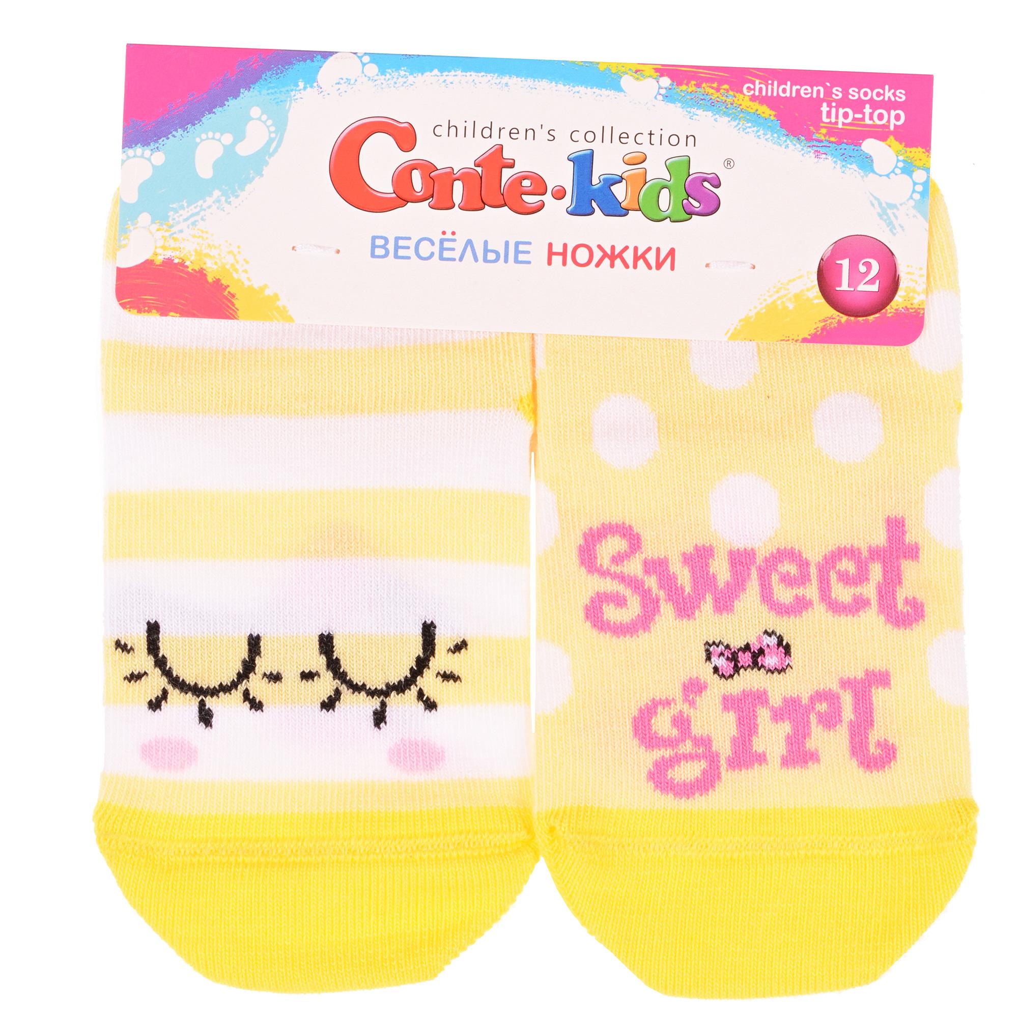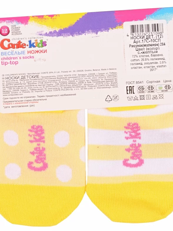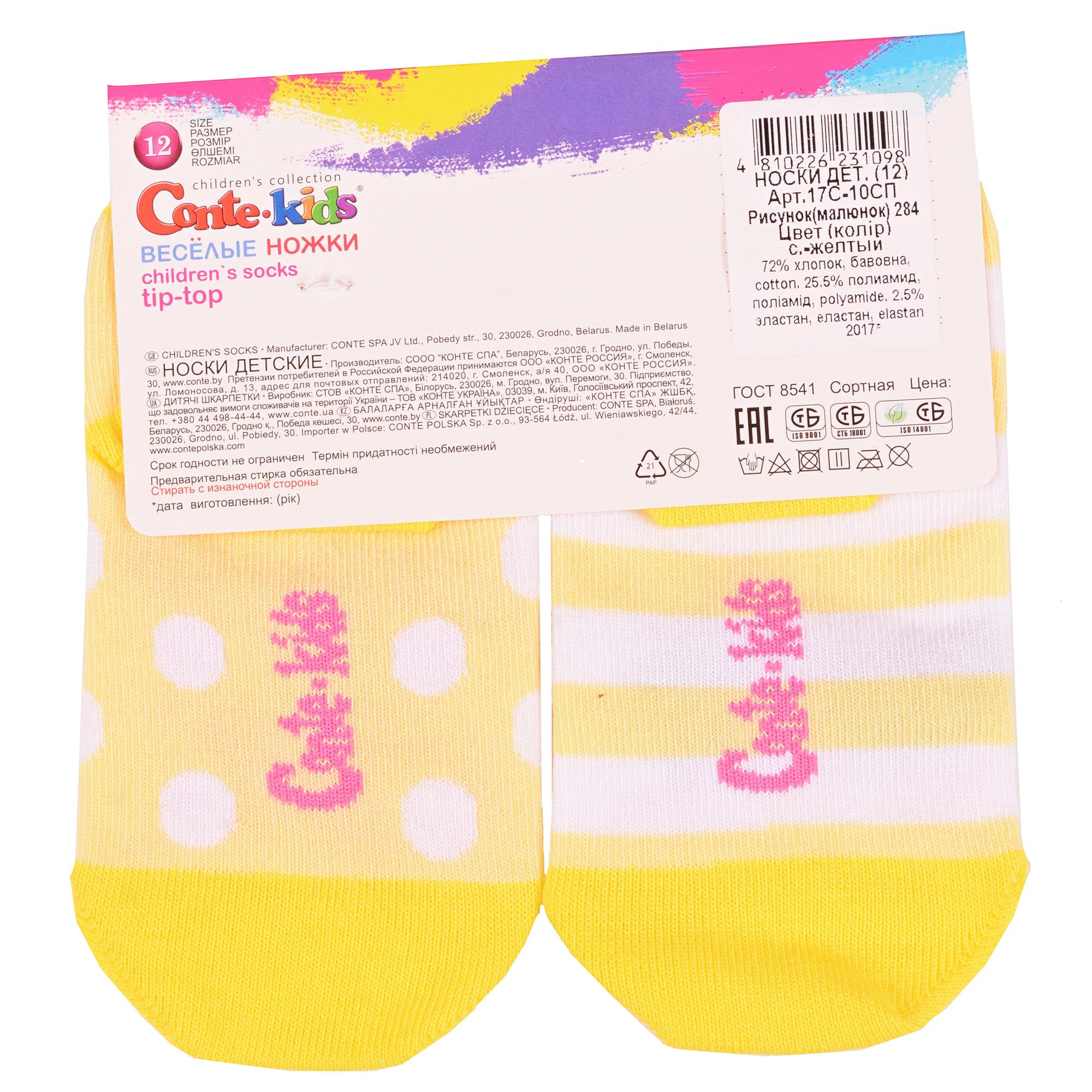 Круглогодичные укороченные детские носки, цвет желтый, прикольные, состав: 72% хлопок, 25.5% полиамид, 2.5% эластан, фабричный артикул 17С-10СП. Производитель «Conte, Беларусь» под брендом «Conte».