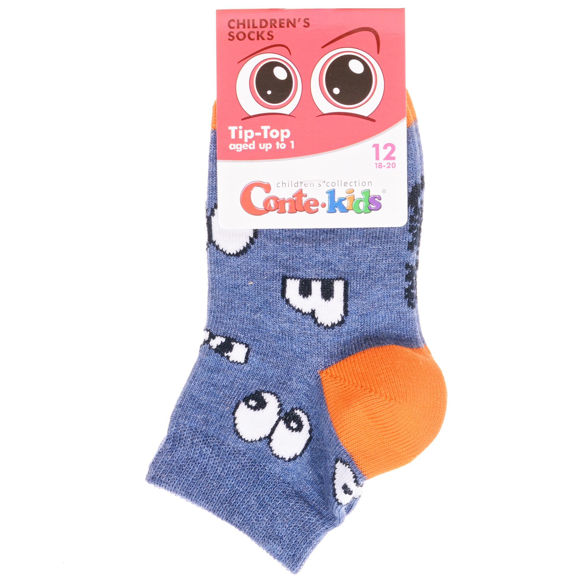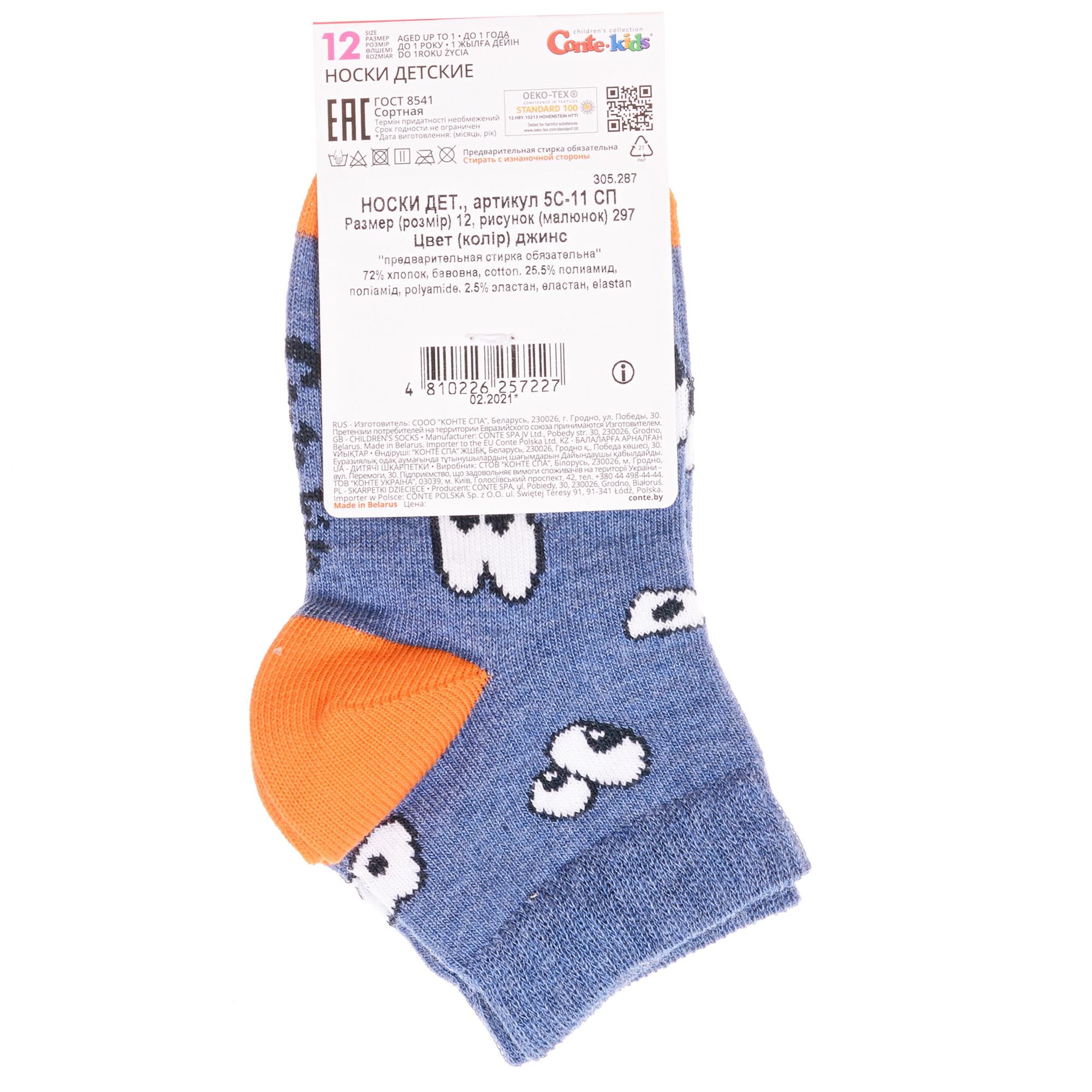 Круглогодичные укороченные детские носки, цвет джинс, прикольные, состав: 72% хлопок, 25.5% полиамид, 2.5% эластан, фабричный артикул 5С-11СП. Производитель «Conte, Беларусь» под брендом «Conte».