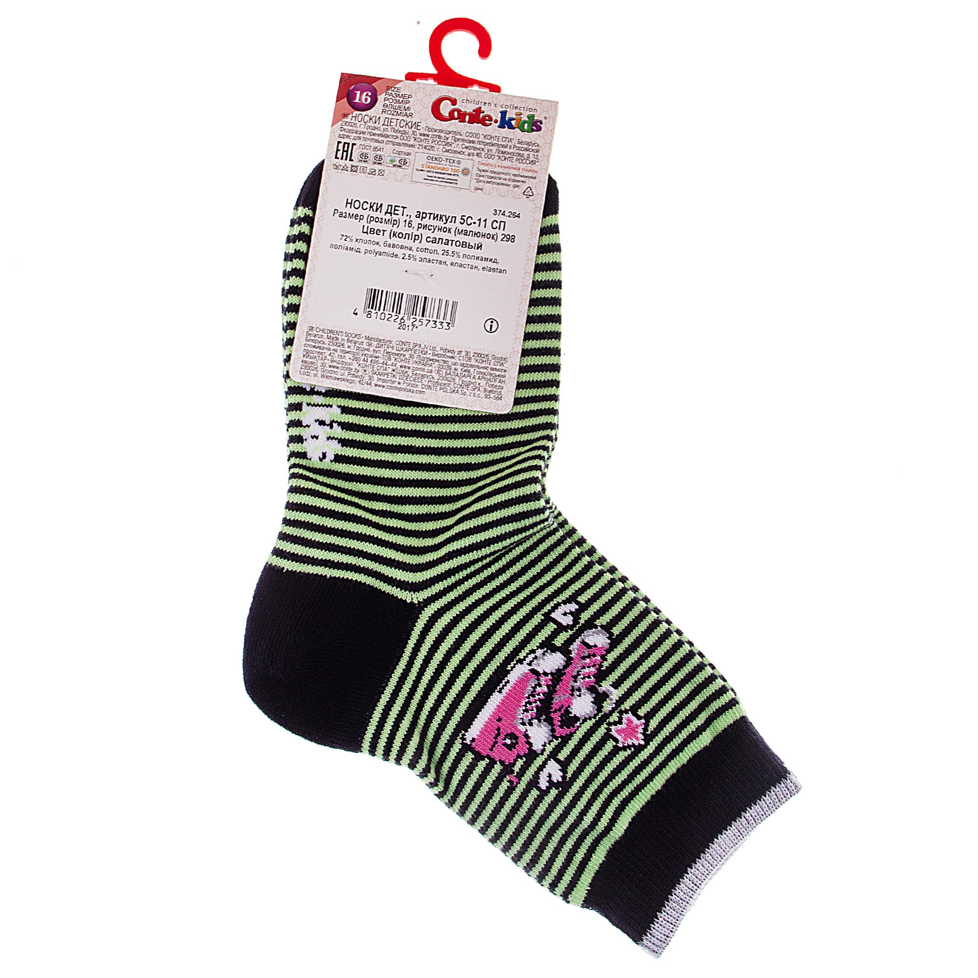 Круглогодичные укороченные детские носки, цвет салатовый, прикольные, состав: 72% хлопок, 25.5% полиамид, 2.5% эластан, фабричный артикул 5С-11СП. Производитель «Conte, Беларусь» под брендом «Conte».