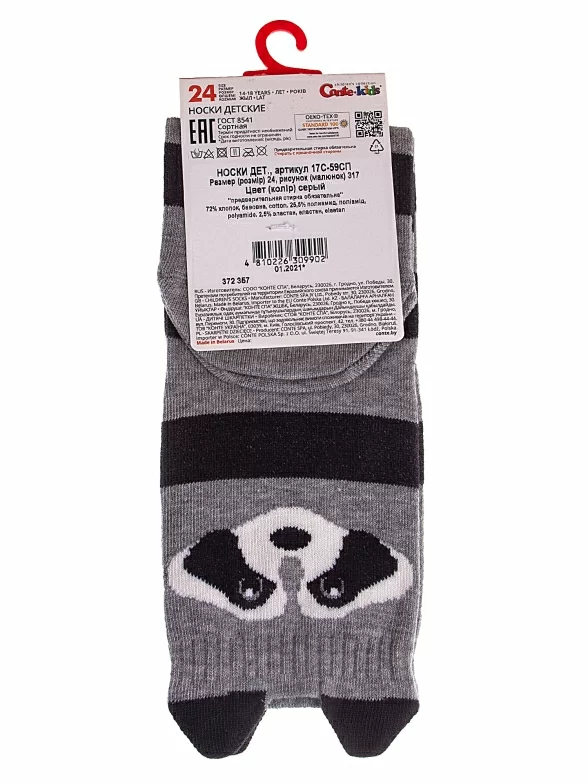 Круглогодичные укороченные детские носки, цвет серый, прикольные, состав: 72% хлопок, 25,5% полиамид, 2,5% эластан, фабричный артикул 17С-59СП. Производитель «Conte, Беларусь» под брендом «Conte».