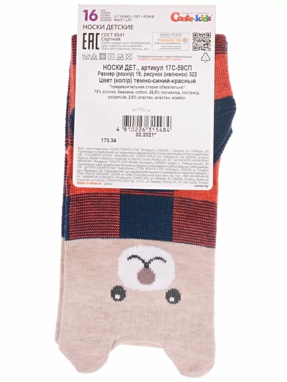 Круглогодичные укороченные детские носки, цвет темно-синий, прикольные, состав: 72% хлопок, 25.5% полиамид, 2.5% эластан, фабричный артикул 17С-59СП. Производитель «Conte, Беларусь» под брендом «Conte».