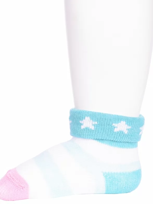 Круглогодичные укороченные детские носки, цвет бирюзовый, с отворотом, состав: 72% хлопок, 25.5% полиамид, 2.5% эластан, фабричный артикул 5С-11СП. Производитель «Conte, Беларусь» под брендом «Conte».