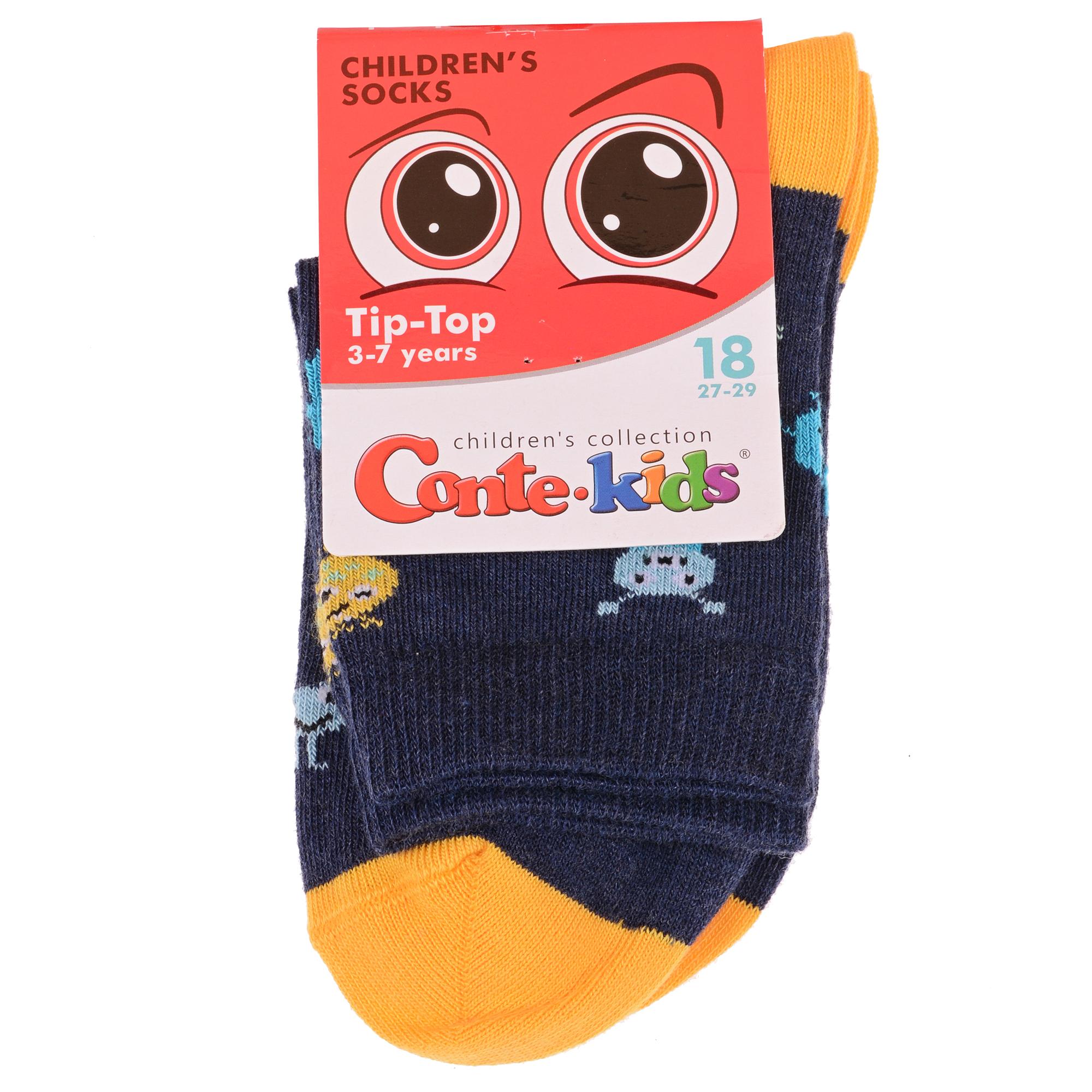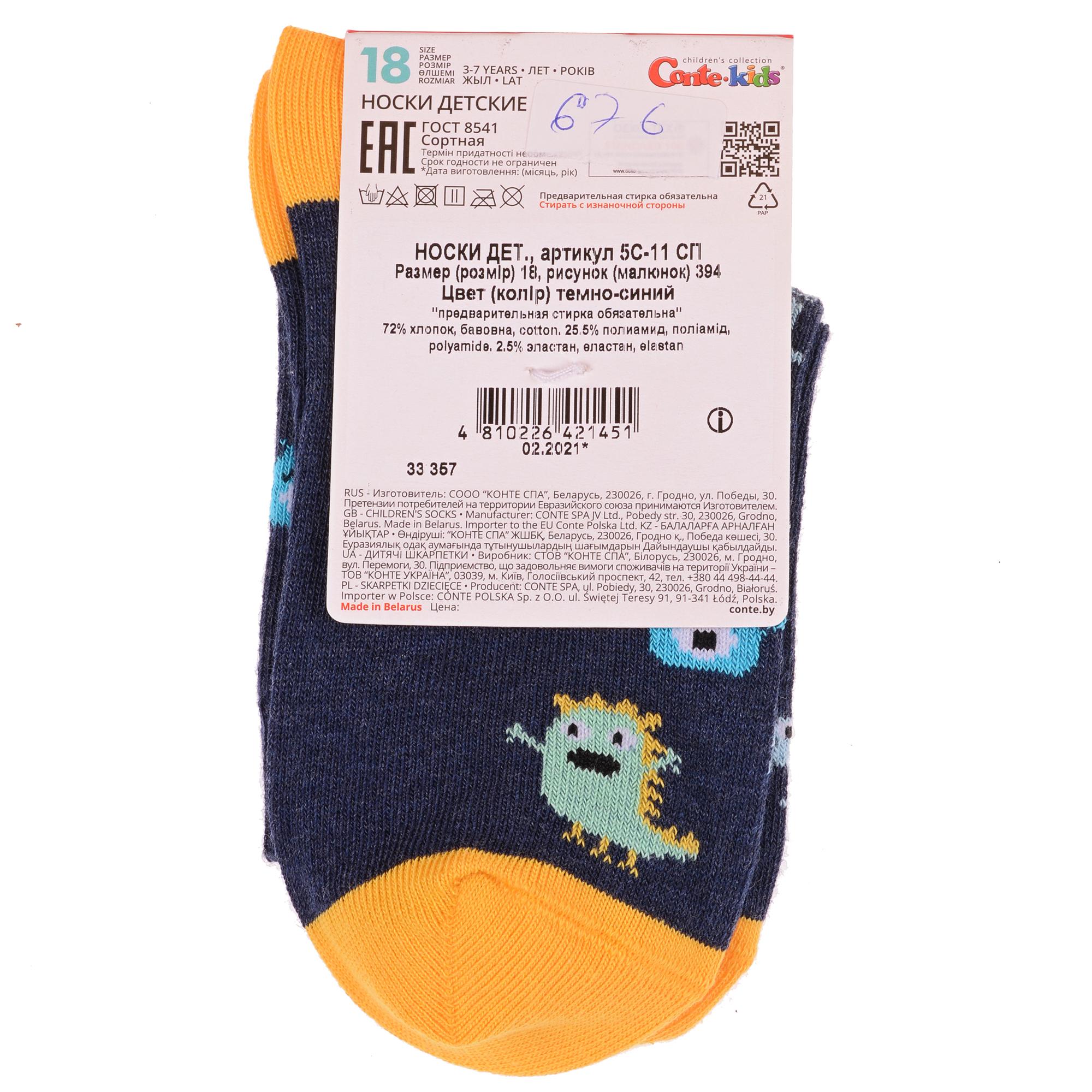 Круглогодичные укороченные детские носки, цвет темно-синий, прикольные, состав: 72% хлопок, 25,5% полиамид, 2,5% эластан, фабричный артикул 5С-11СП. Производитель «Conte, Беларусь» под брендом «Conte».