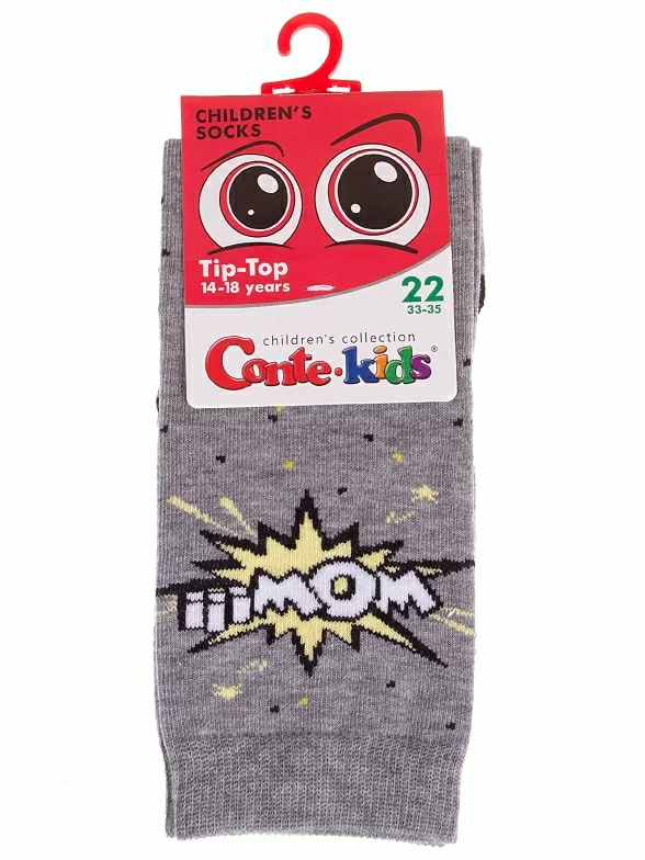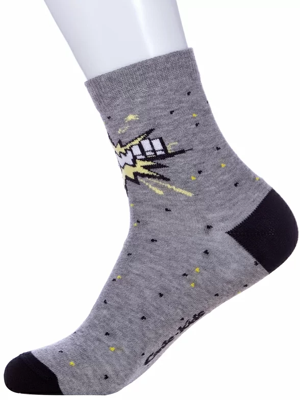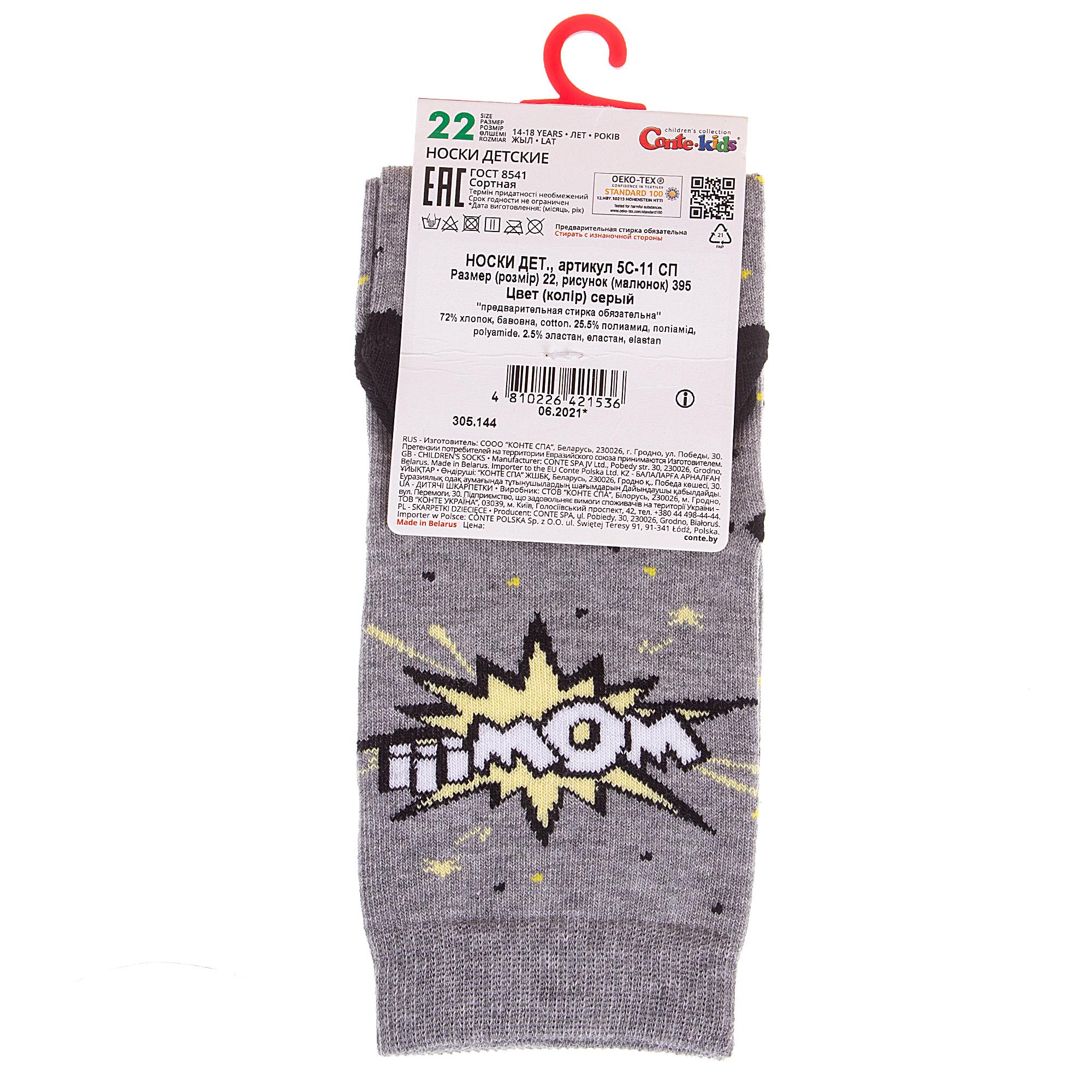 Круглогодичные укороченные детские носки, цвет серый, прикольные, состав: 72% хлопок, 25,5% полиамид, 2,5% эластан, фабричный артикул 5С-11СП. Производитель «Conte, Беларусь» под брендом «Conte».
