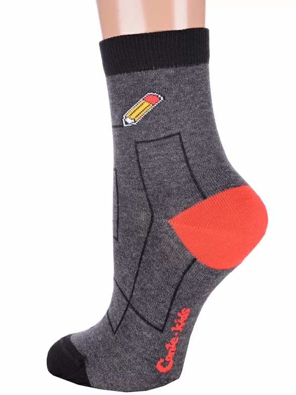 Круглогодичные укороченные детские носки, цвет темно-серый, прикольные, состав: 72% хлопок, 25,5% полиамид, 2,5% эластан, фабричный артикул 5С-11СП. Производитель «Conte, Беларусь» под брендом «Conte».