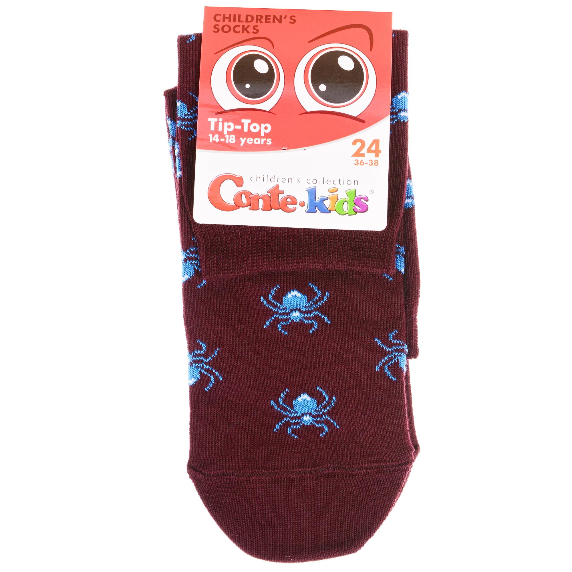 Круглогодичные укороченные детские носки, цвет бордовый, прикольные, состав: 72% хлопок, 25.5% полиамид, 2.5% эластан, фабричный артикул 5С-11СП. Производитель «Conte, Беларусь» под брендом «Conte».