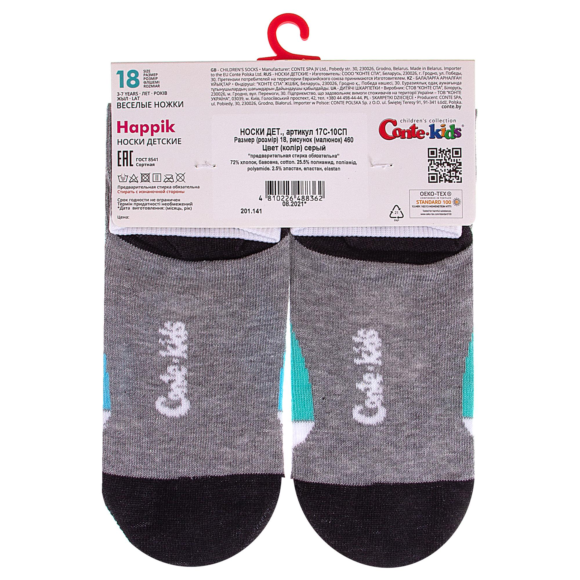 Круглогодичные укороченные детские носки, цвет серый, прикольные, состав: 72% хлопок, 25.5% полиамид, 2.5% эластан, фабричный артикул 17С-10СП. Производитель «Conte, Беларусь» под брендом «Conte».