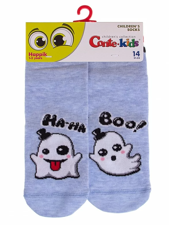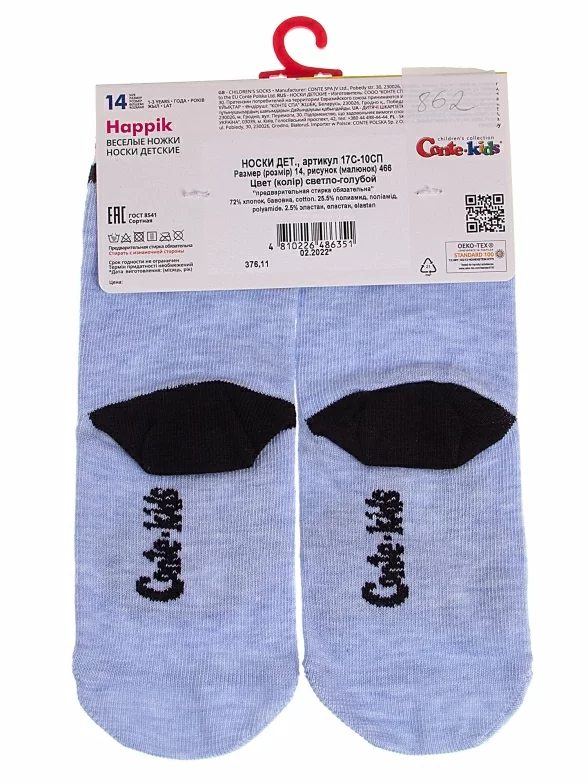 Круглогодичные укороченные детские носки, цвет голубой, прикольные, состав: 72% хлопок, 25.5% полиамид, 2.5% эластан, фабричный артикул 17С-10СП. Производитель «Conte, Беларусь» под брендом «Conte».