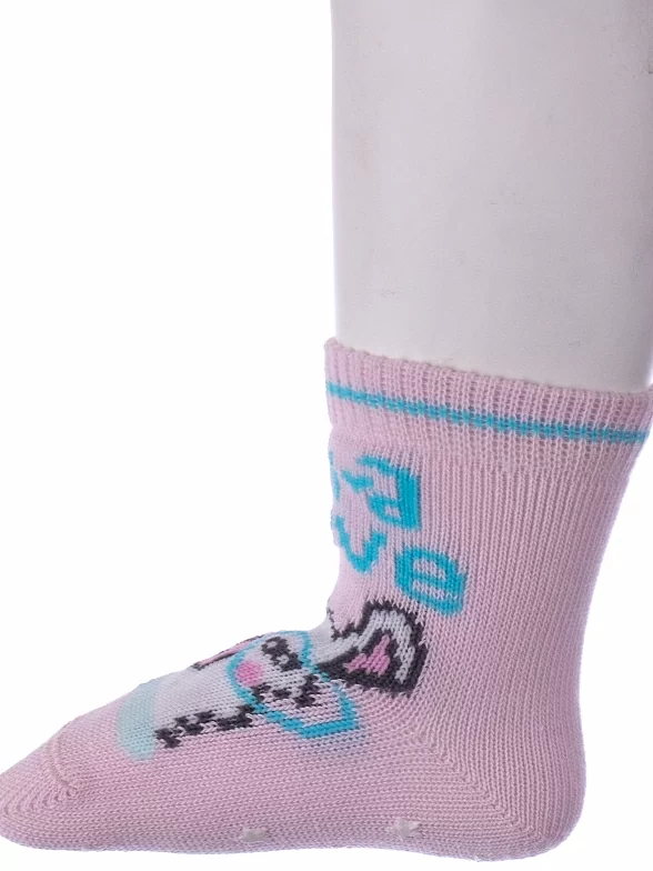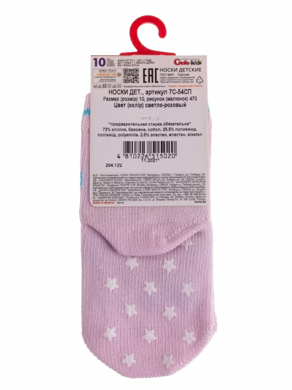 Круглогодичные укороченные детские носки, цвет розовый, с нескользящей стопой, состав: 72% хлопок, 25.5% полиамид, 2.5% эластан, фабричный артикул 7С-54СП. Производитель «Conte, Беларусь» под брендом «Conte».