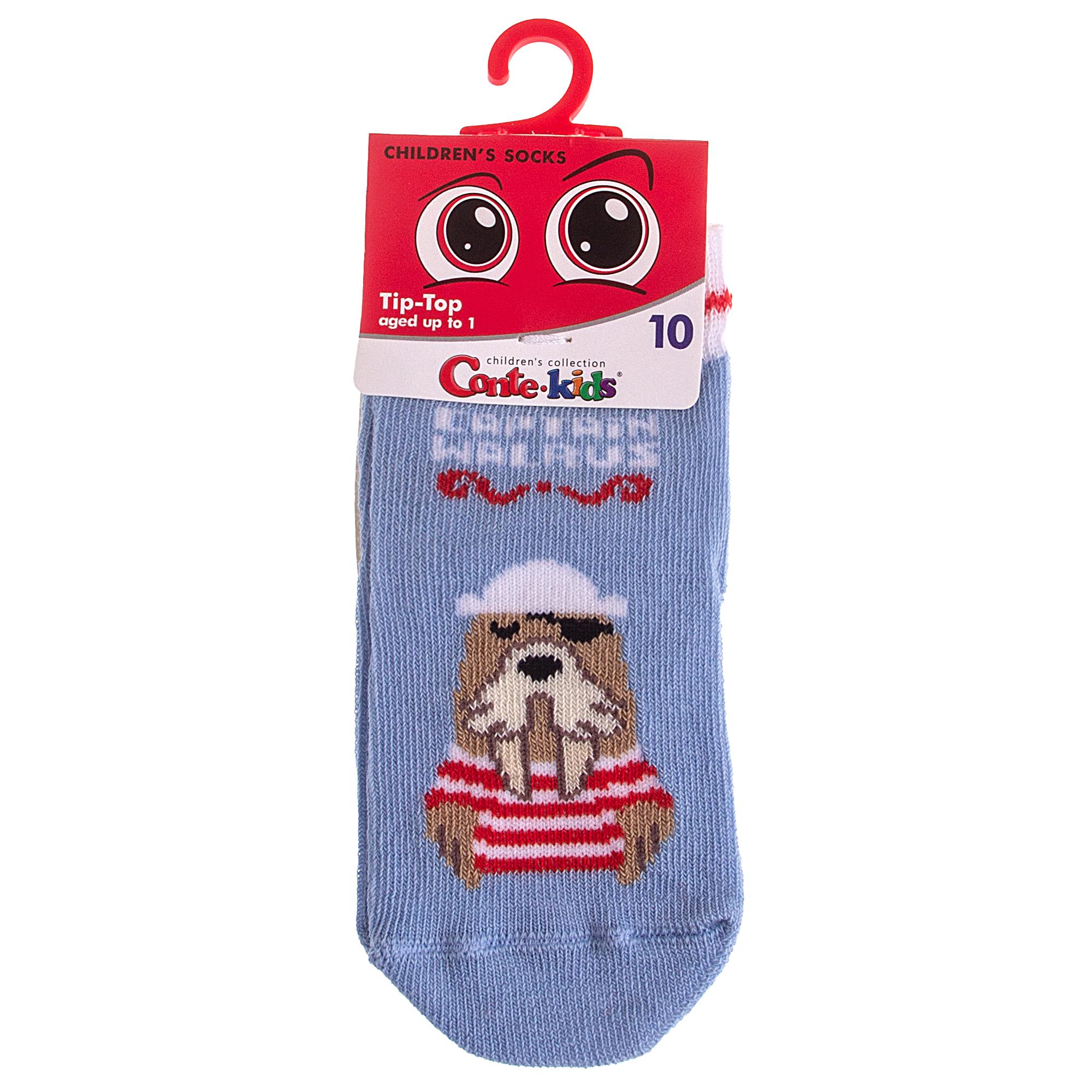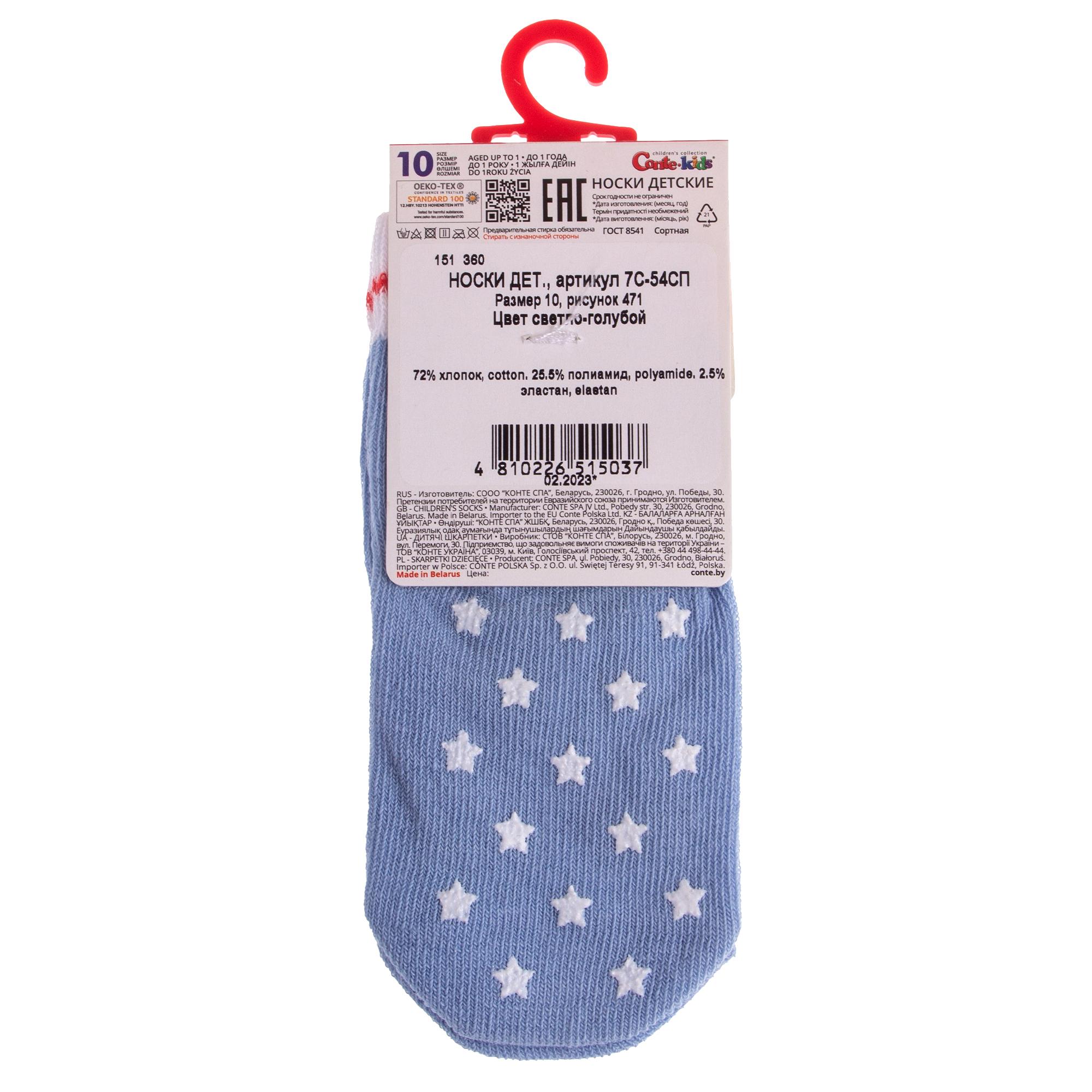 Круглогодичные укороченные детские носки, цвет голубой, с нескользящей стопой, состав: 72% хлопок, 25.5% полиамид, 2.5% эластан, фабричный артикул 7С-54СП. Производитель «Conte, Беларусь» под брендом «Conte».