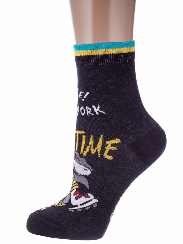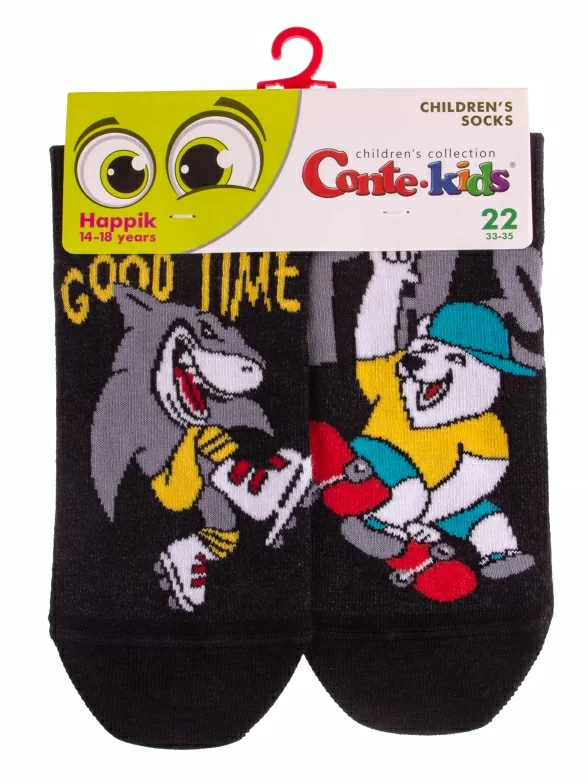 Круглогодичные укороченные детские носки, цвет черный, прикольные, состав: 72% хлопок, 25,5% полиамид, 2,5% эластан, фабричный артикул 17С-10СП. Производитель «Conte, Беларусь» под брендом «Conte».