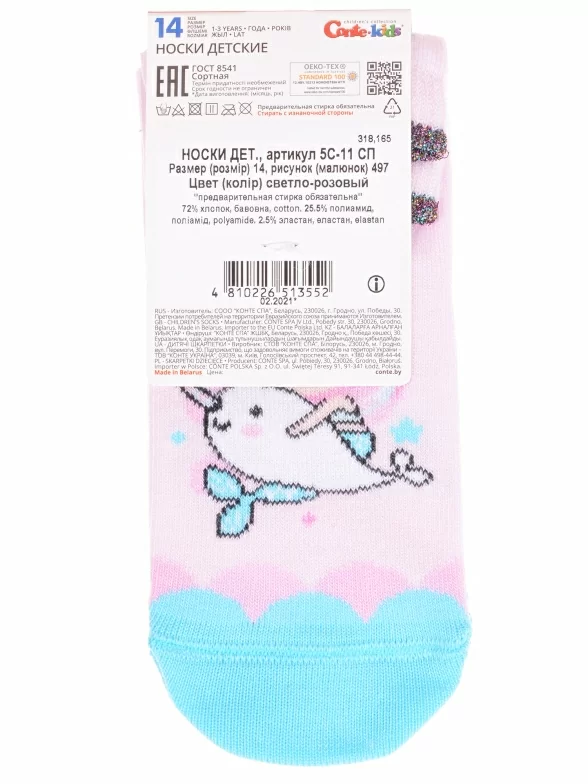 Круглогодичные укороченные детские носки, цвет розовый, прикольные, состав: 72% хлопок, 25.5% полиамид, 2.5% эластан, фабричный артикул 5С-11СП. Производитель «Conte, Беларусь» под брендом «Conte».