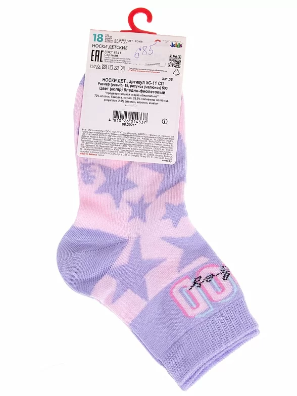 Круглогодичные укороченные детские носки, цвет фиолетовый, прикольные, состав: 72% хлопок, 25,5% полиамид, 2,5% эластан, фабричный артикул 5С-11СП. Производитель «Conte, Беларусь» под брендом «Conte».