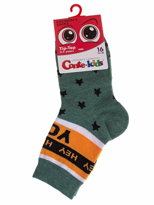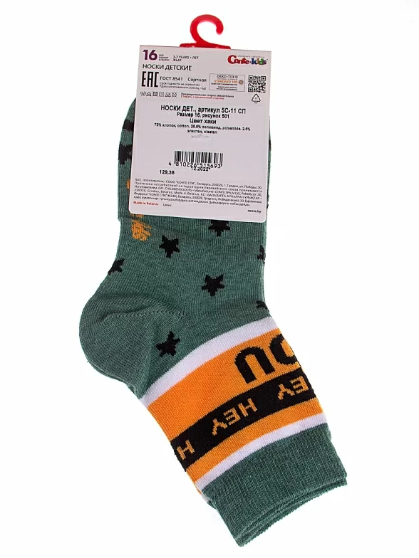 Круглогодичные укороченные детские носки, цвет хаки, прикольные, состав: 72% хлопок, 25.5% полиамид, 2.5% эластан, фабричный артикул 5С-11СП. Производитель «Conte, Беларусь» под брендом «Conte».