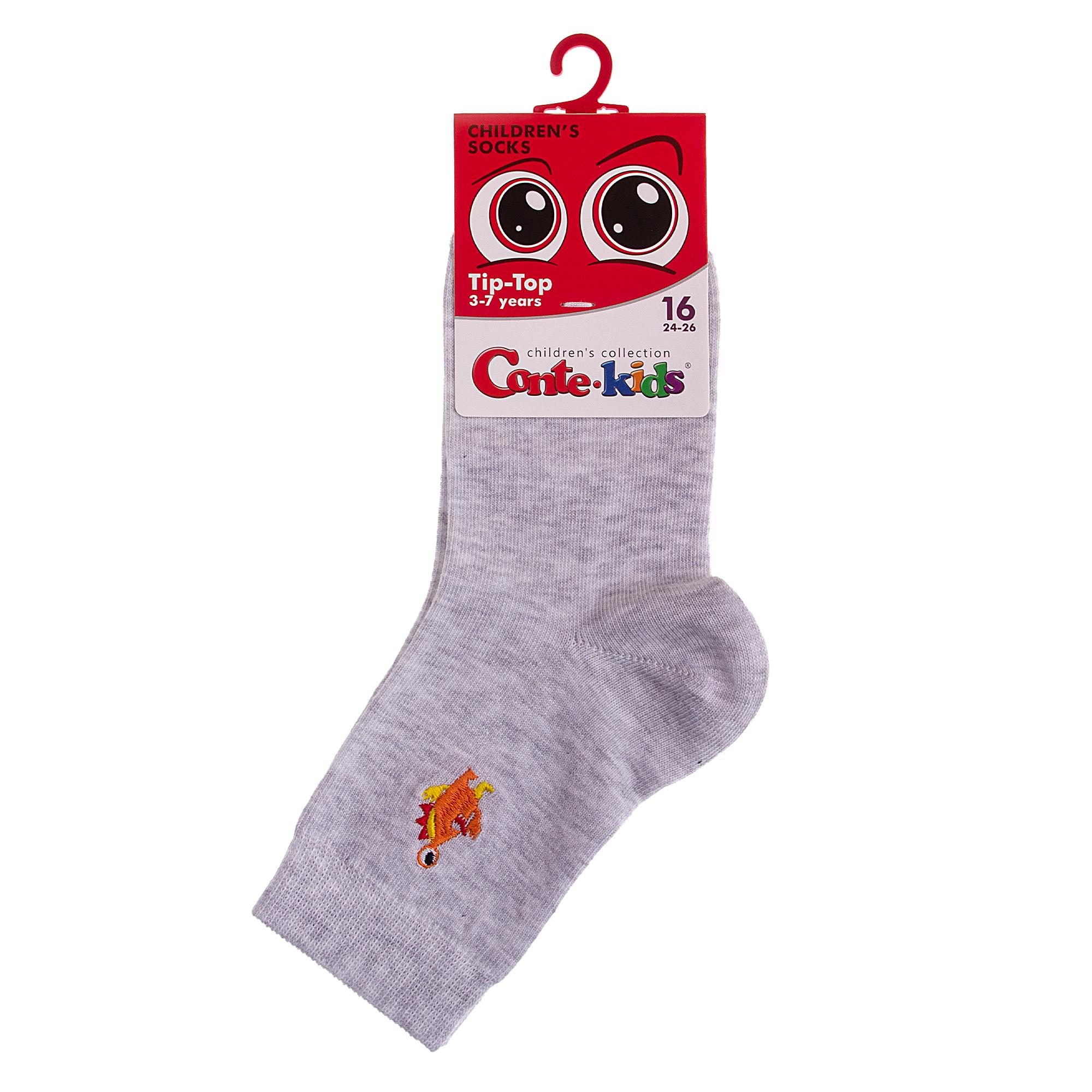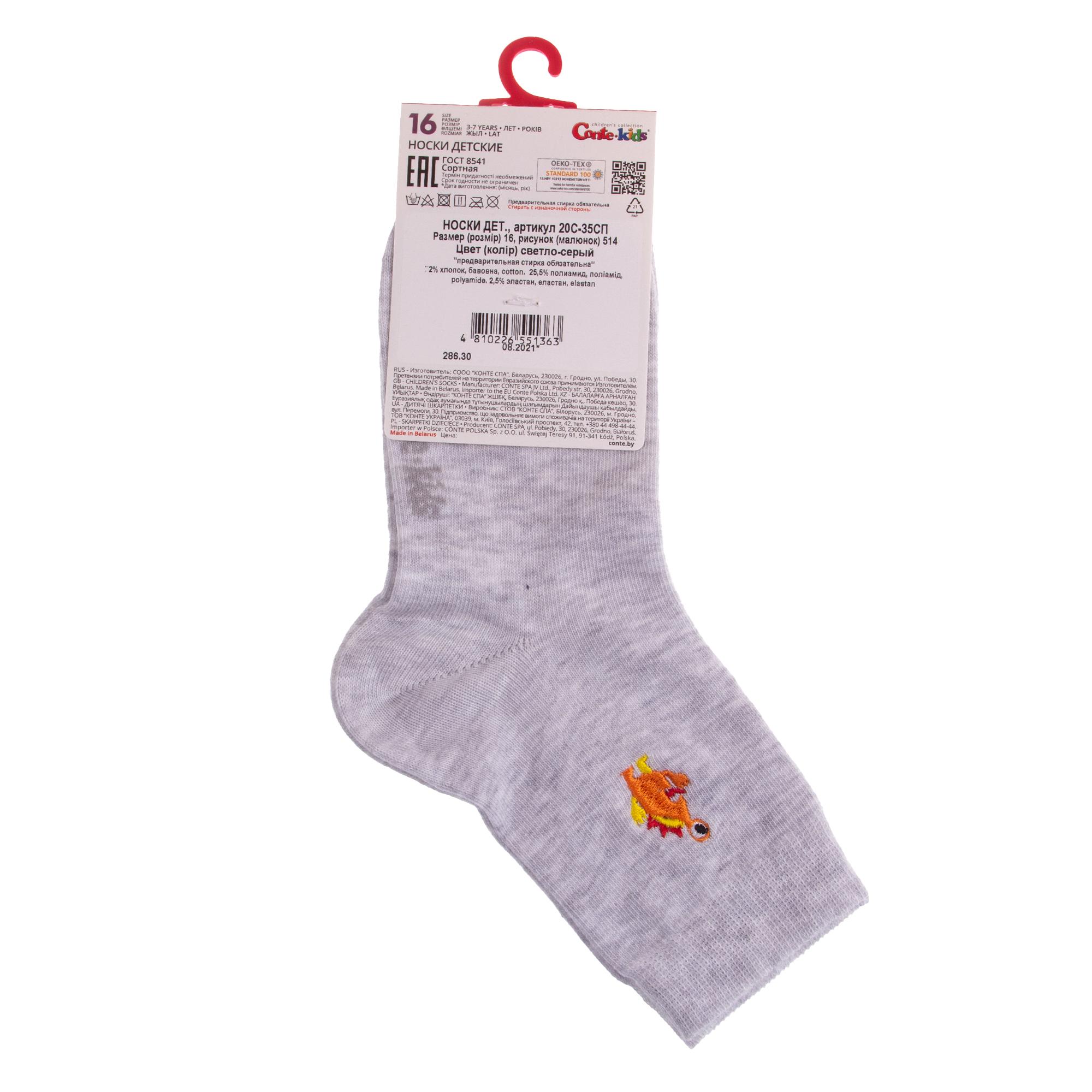 Круглогодичные укороченные детские носки, цвет светло-серый, с вышивкой, состав: 72% хлопок, 25.5% полиамид, 2.5% эластан, фабричный артикул 20С-35СП. Производитель «Conte, Беларусь» под брендом «Conte».