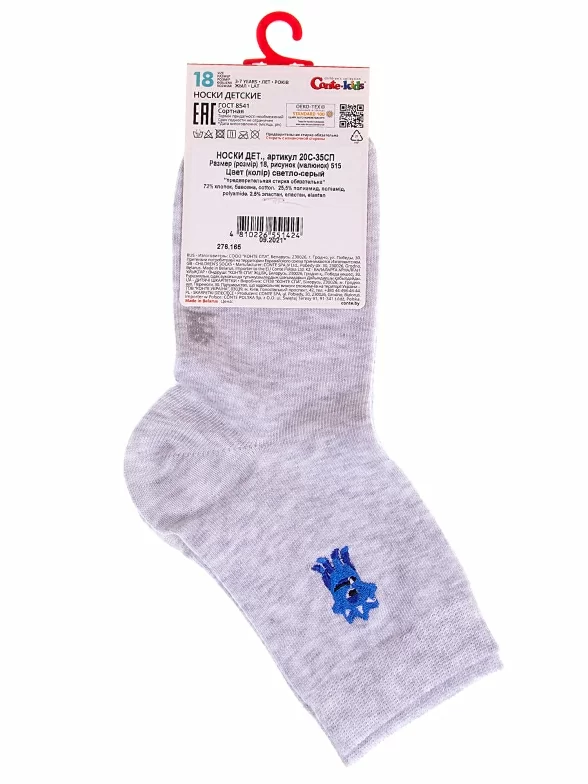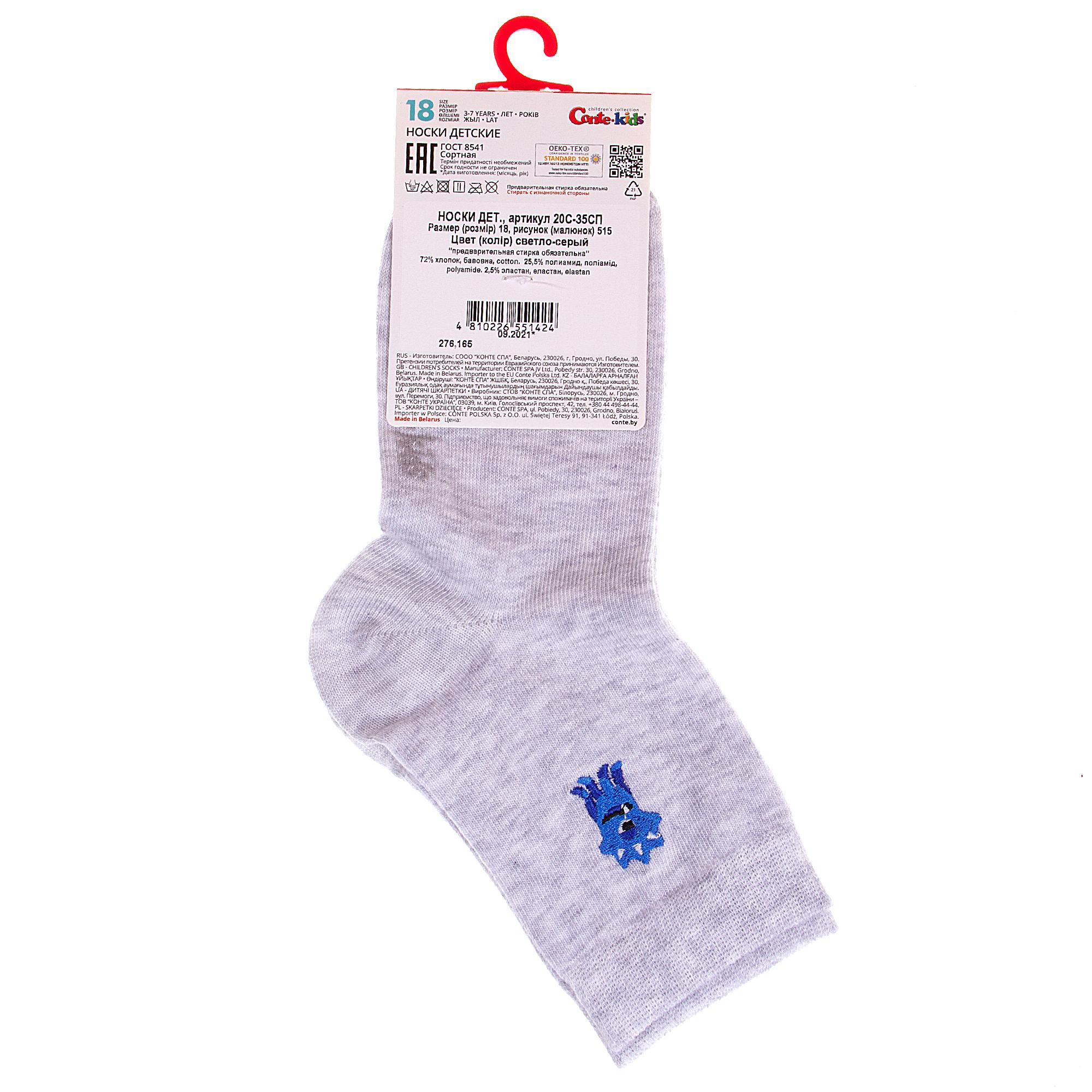 Круглогодичные укороченные детские носки, цвет светло-серый, прикольные, состав: 72% хлопок, 25.5% полиамид, 2.5% эластан, фабричный артикул 20С-35СП. Производитель «Conte, Беларусь» под брендом «Conte».