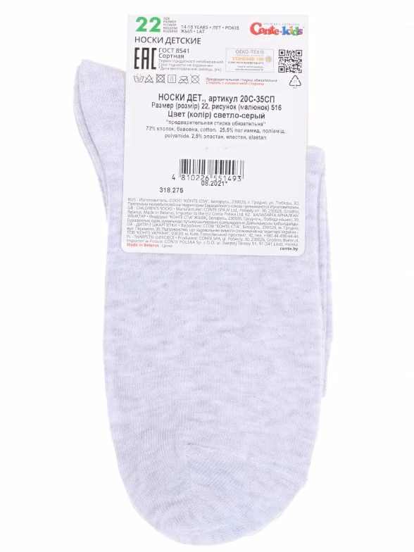 Детские носки Conte kids, 20С-35СП, рис. 516, СВЕТЛО-СЕРЫЕ