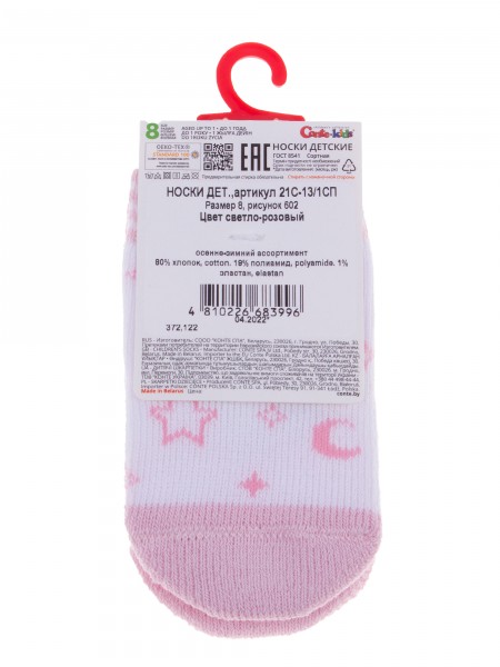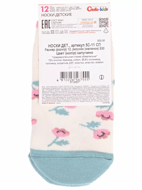 Круглогодичные укороченные детские носки, цвет белый, прикольные, состав: 72% хлопок, 25.5% полиамид, 2.5% эластан, фабричный артикул 5С-11СП. Производитель «Conte, Беларусь» под брендом «Conte».