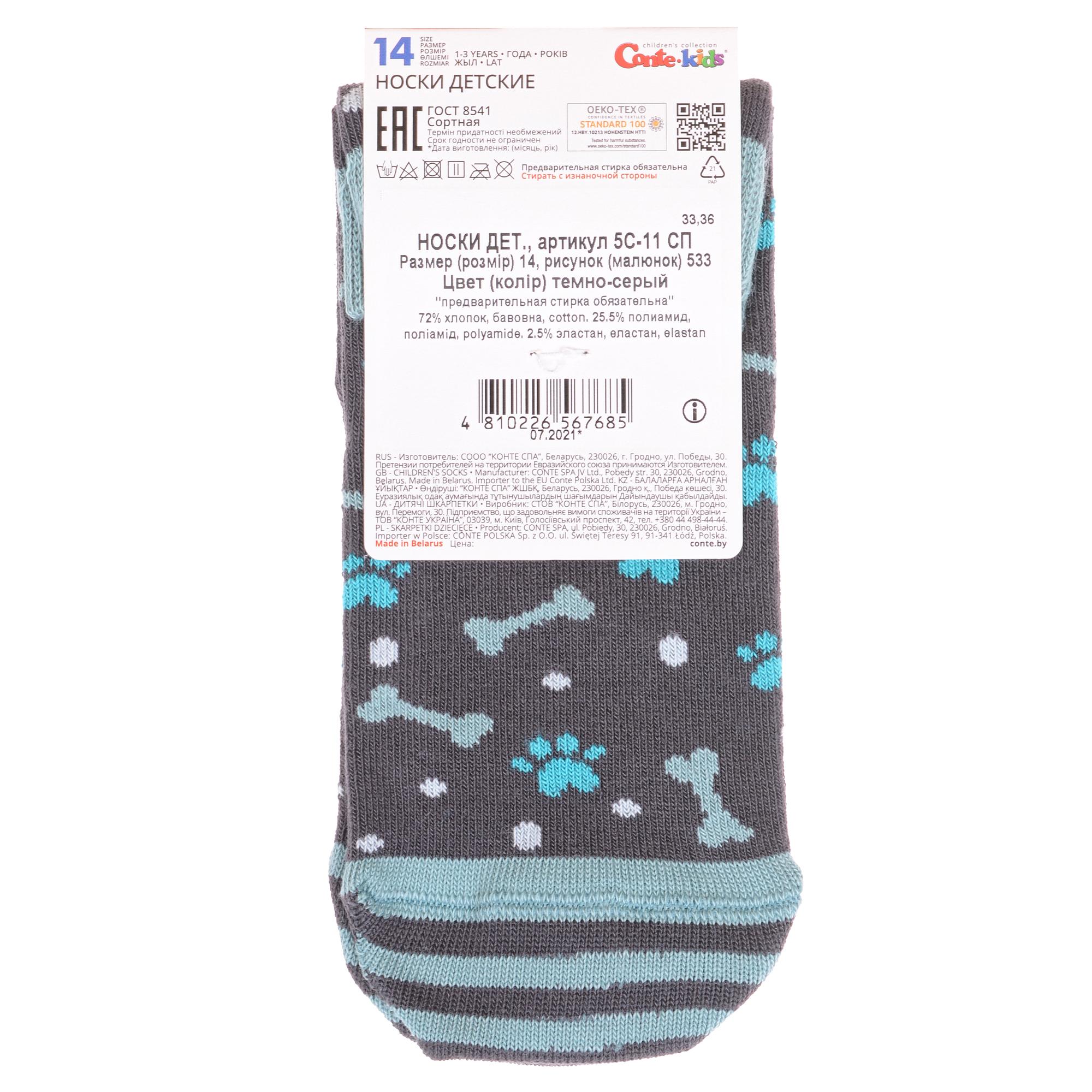 Круглогодичные укороченные детские носки, цвет темно-серый, прикольные, состав: 72% хлопок, 25.5% полиамид, 2.5% эластан, фабричный артикул 5С-11СП. Производитель «Conte, Беларусь» под брендом «Conte».
