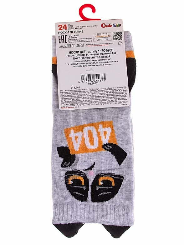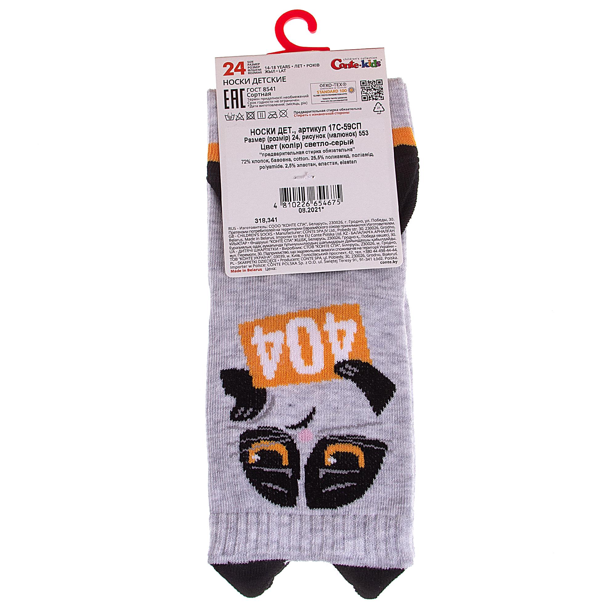 Круглогодичные укороченные детские носки, цвет светло-серый, прикольные, состав: 72% хлопок, 25,5% полиамид, 2,5% эластан, фабричный артикул 17С-59СП. Производитель «Conte, Беларусь» под брендом «Conte».
