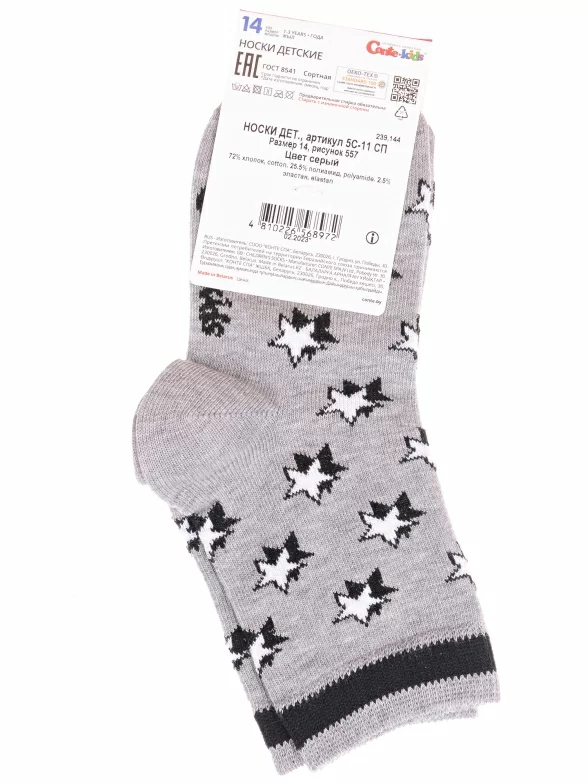 Круглогодичные укороченные детские носки, цвет серый, прикольные, состав: 72% хлопок, 25.5% полиамид, 2.5% эластан, фабричный артикул 5С-11СП. Производитель «Conte, Беларусь» под брендом «Conte».