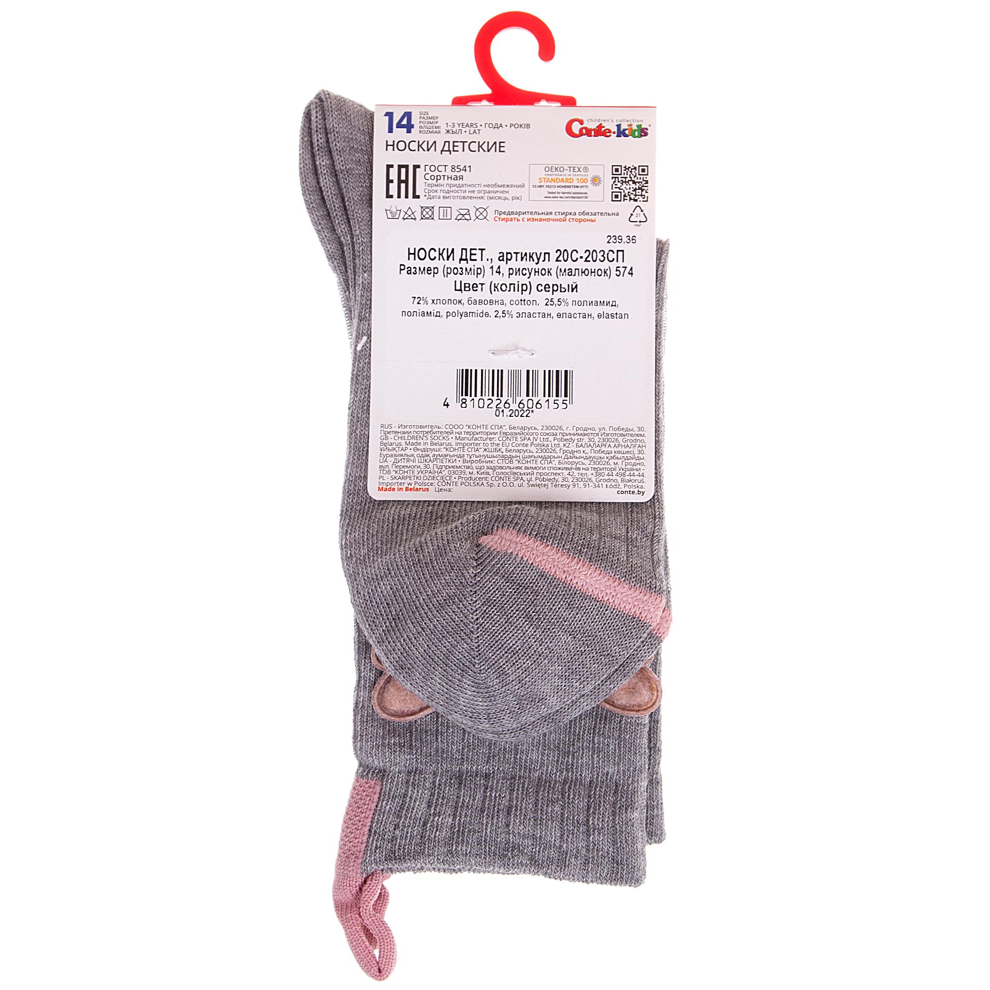 Круглогодичные средней длины детские носки, цвет серый, прикольные, состав: 72% хлопок, 25.5% полиамид, 2.5% эластан, фабричный артикул 20С-203СП. Производитель «Conte, Беларусь» под брендом «Conte».