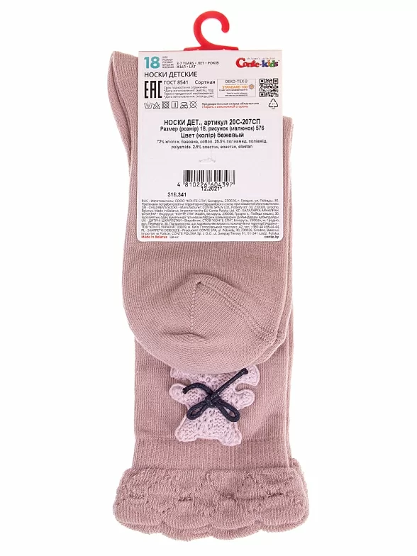 Круглогодичные средней длины детские носки, цвет бежевый, прикольные, состав: 72% хлопок, 25.5% полиамид, 2.5% эластан, фабричный артикул 20С-207СП. Производитель «Conte, Беларусь» под брендом «Conte».