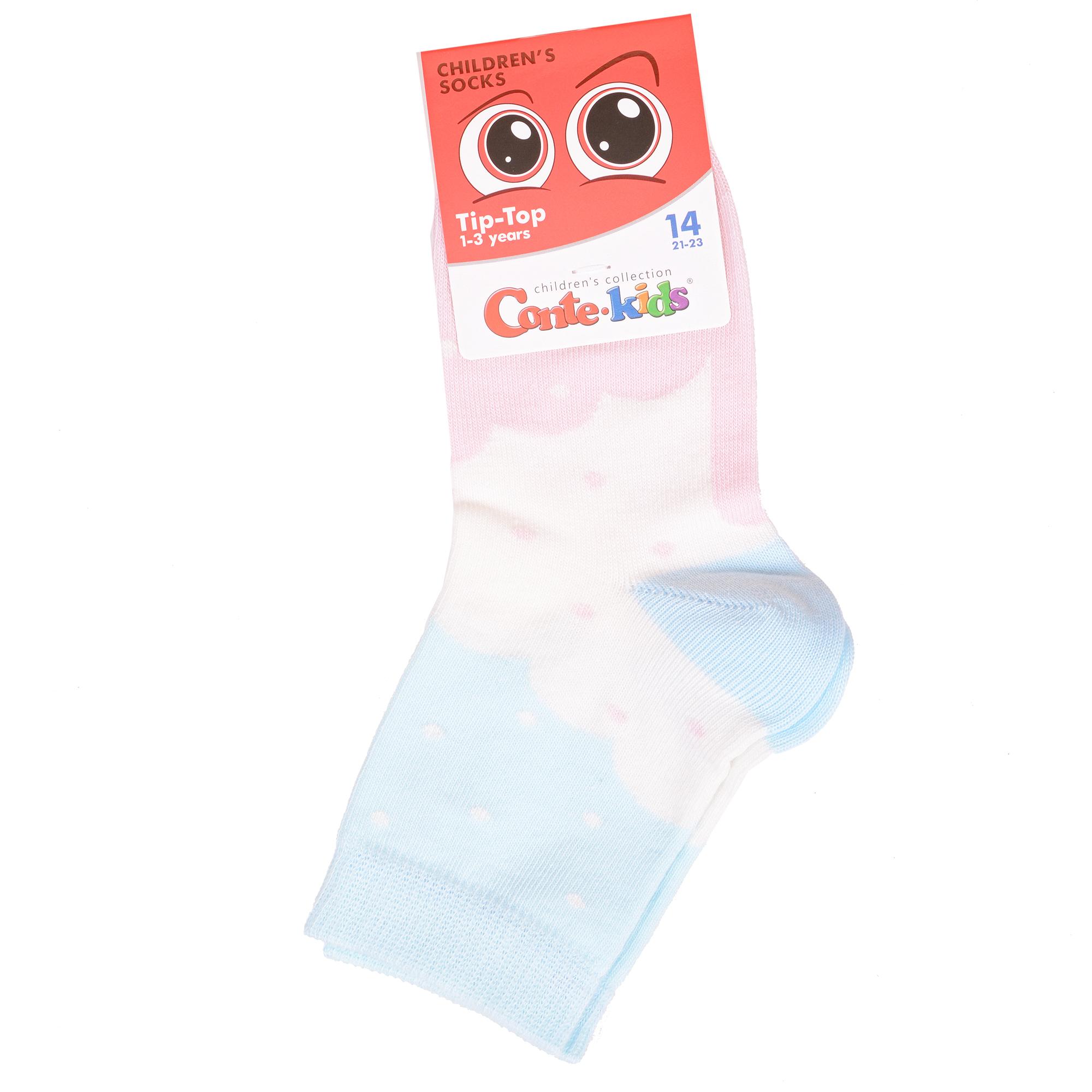 Круглогодичные укороченные детские носки, цвет розовый-бирюзовый, прикольные, состав: 72% хлопок, 25.5% полиамид, 2.5% эластан, фабричный артикул 5С-11СП. Производитель «Conte, Беларусь» под брендом «Conte».