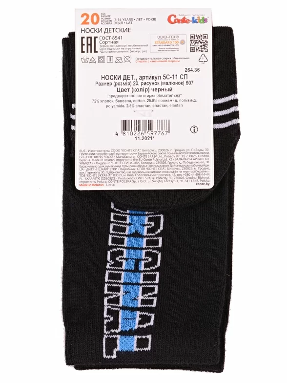 Круглогодичные укороченные детские носки, цвет черный, прикольные, состав: 72% хлопок, 25,5% полиамид, 2,5% эластан, фабричный артикул 5С-11СП. Производитель «Conte, Беларусь» под брендом «Conte».