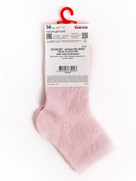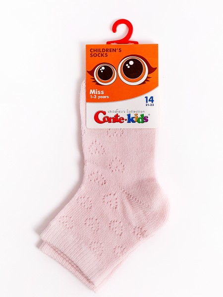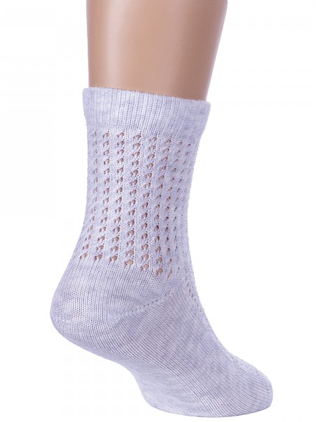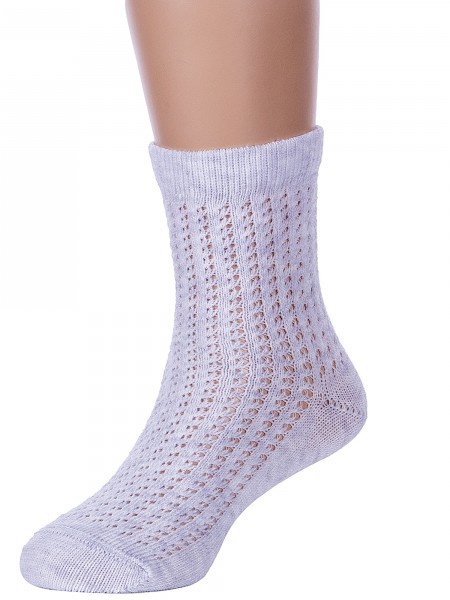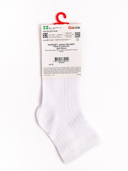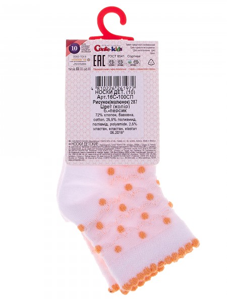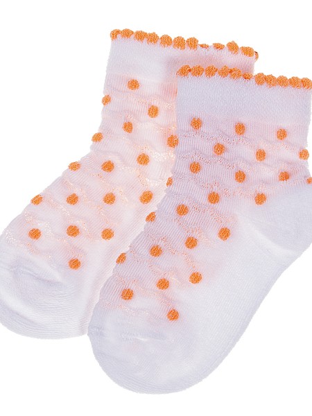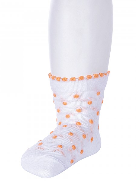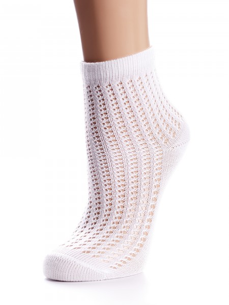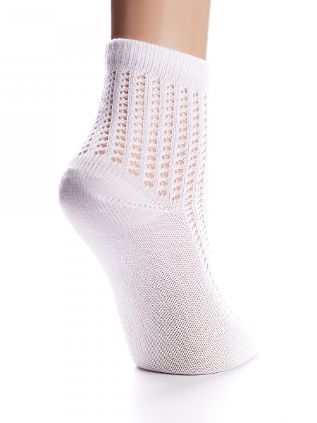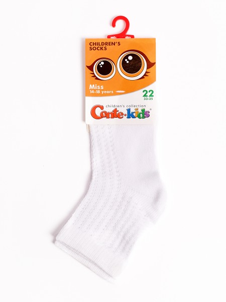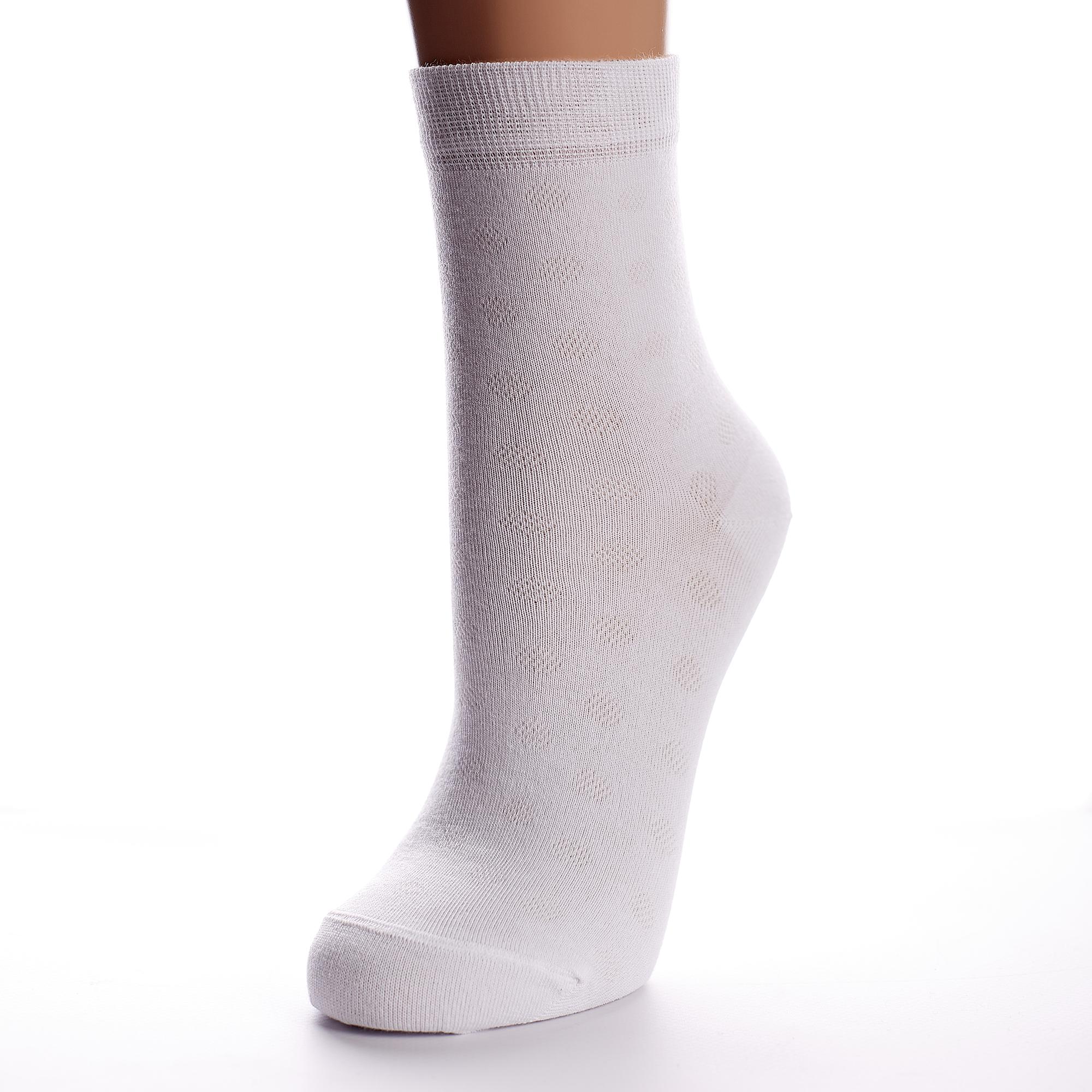 Летние укороченные детские носки, цвет белый, ажурные, классические, шов кеттельный (бесшовная технология), принт (рисунок): горох/точка, с узором, однотонный, состав: 51% хлопок, 46% полиамид, 3% эластан, арт. 13С-9СП. Производитель «Conte, Беларусь» под брендом «Conte».