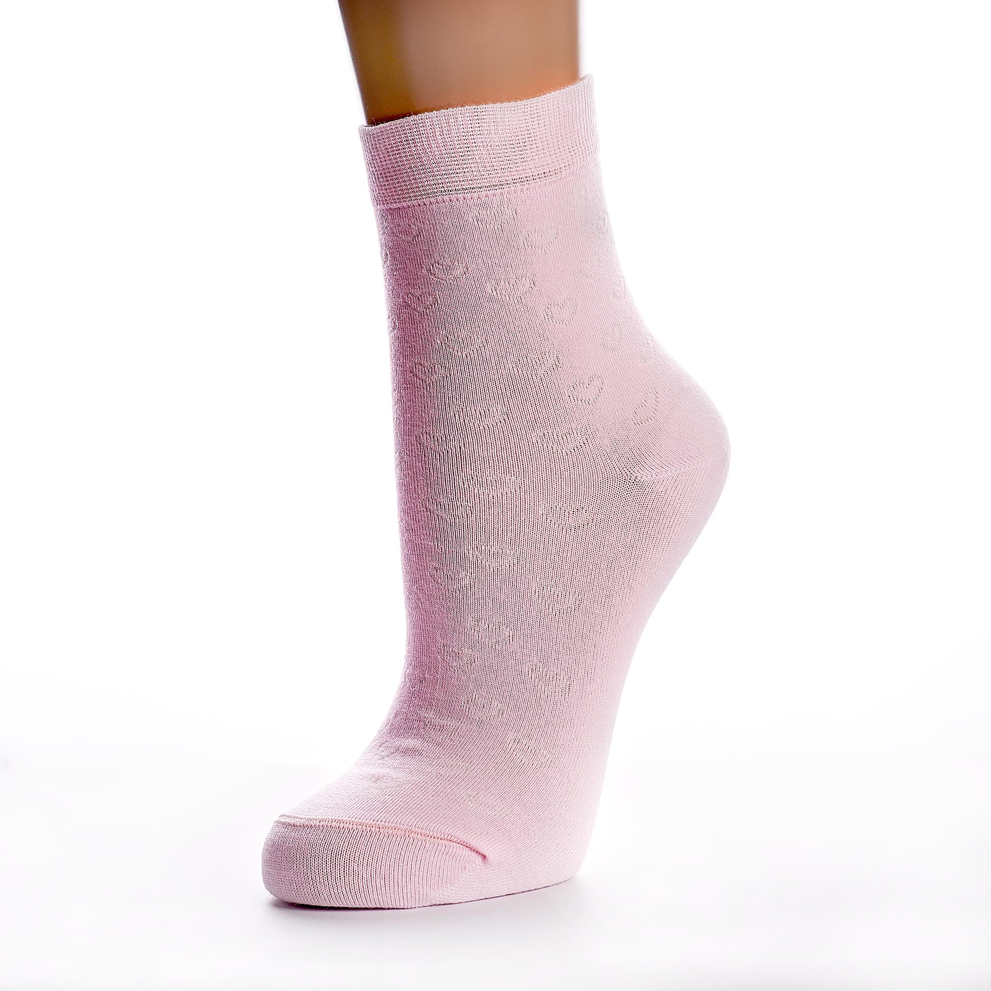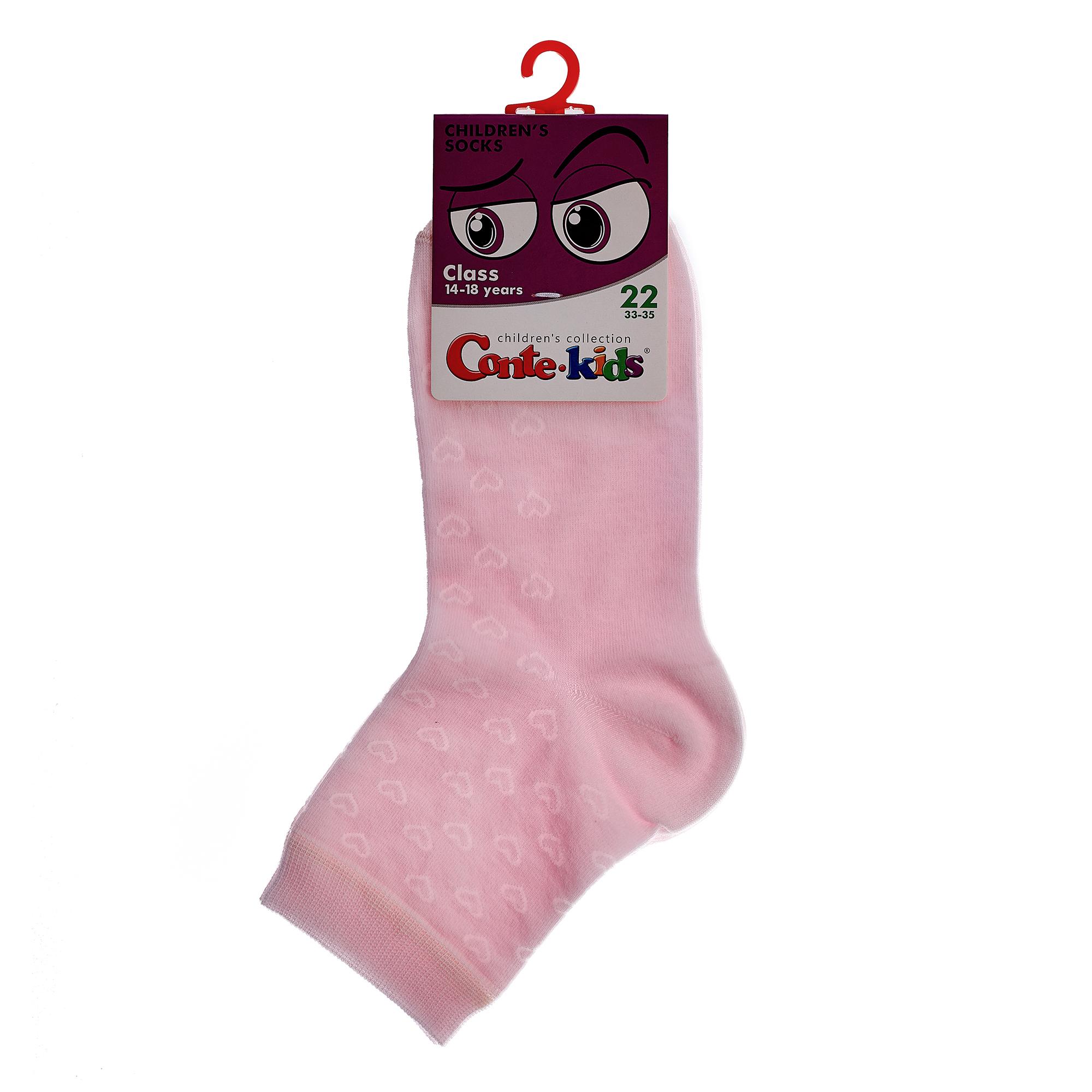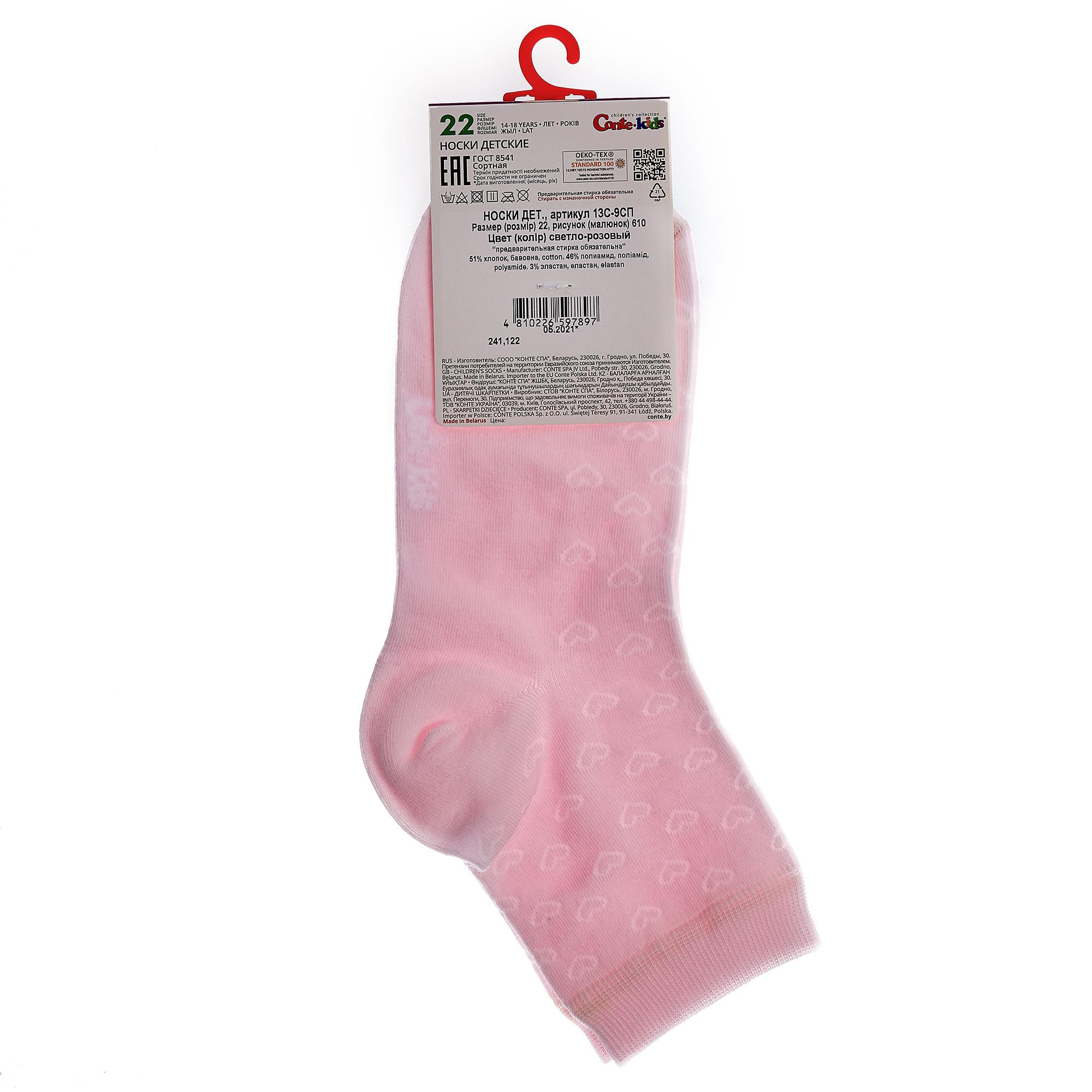 Летние укороченные детские носки, цвет розовый, ажурные, классические, шов кеттельный (бесшовная технология), принт (рисунок): сердечки / поцелуи / любовь, с узором, однотонный, состав: 51% хлопок, 46% полиамид, 3% эластан, арт. 13С-9СП. Производитель «Conte, Беларусь» под брендом «Conte».