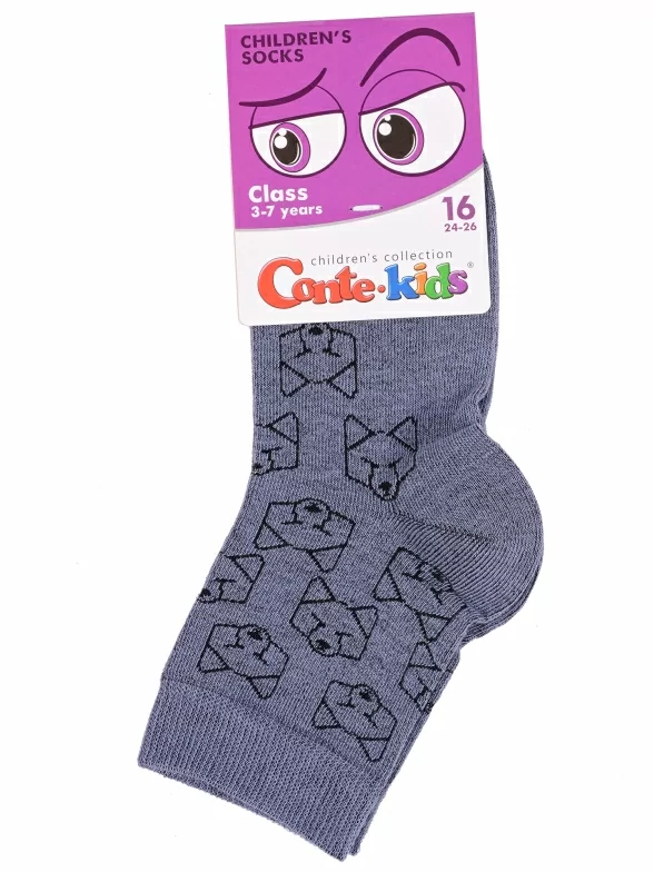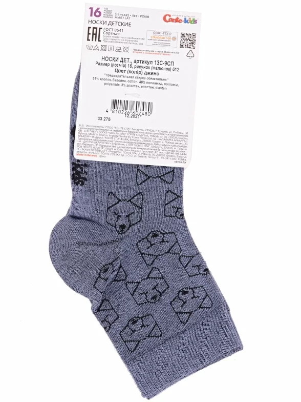 Круглогодичные укороченные детские носки, цвет джинс, прикольные, состав: 51% хлопок, 46% полиамид, 3% эластан, фабричный артикул 13С-9СП. Производитель «Conte, Беларусь» под брендом «Conte».