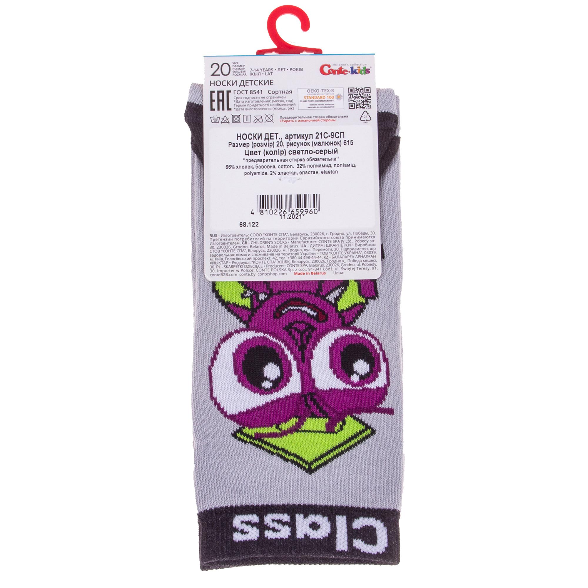 Круглогодичные укороченные детские носки, цвет светло-серый, прикольные, состав: 66% хлопок, 32% полиамид, 2% эластан, фабричный артикул 21С-9СП. Производитель «Conte, Беларусь» под брендом «Conte».